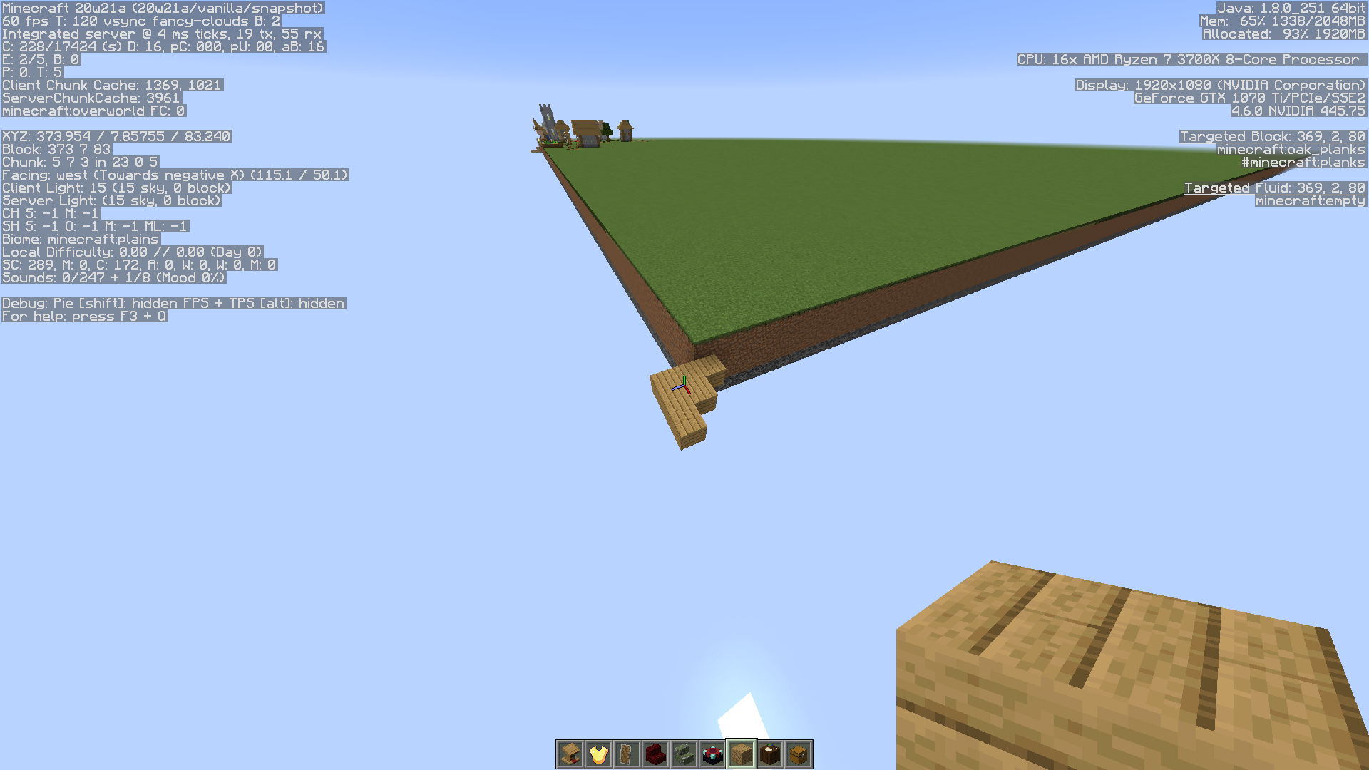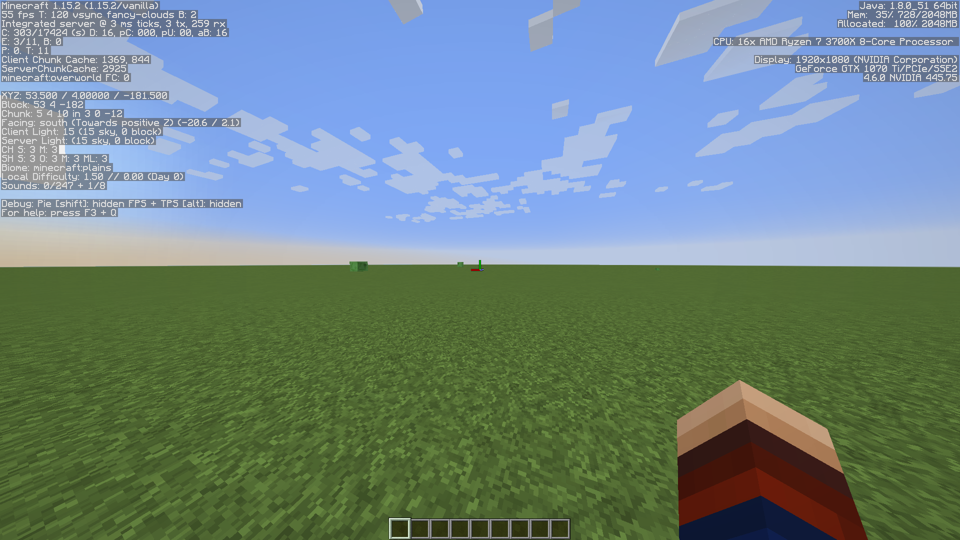 1. Create new superflat world with the default preset, creative mode, generate structures off, in 1.15.2.