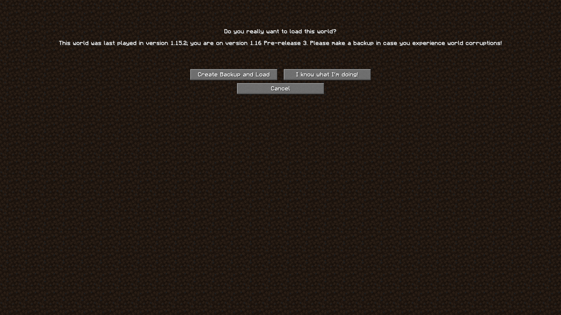 Convert your world to the current version of the game (20w21a)
