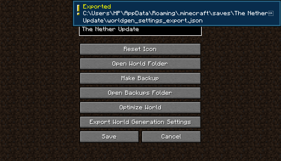 Export World Generation Settings