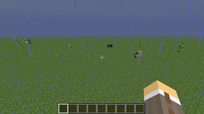 I believe this is a bug because i don't think Jens would add a spawning code where mobs would spawn during daylight if rain is on.