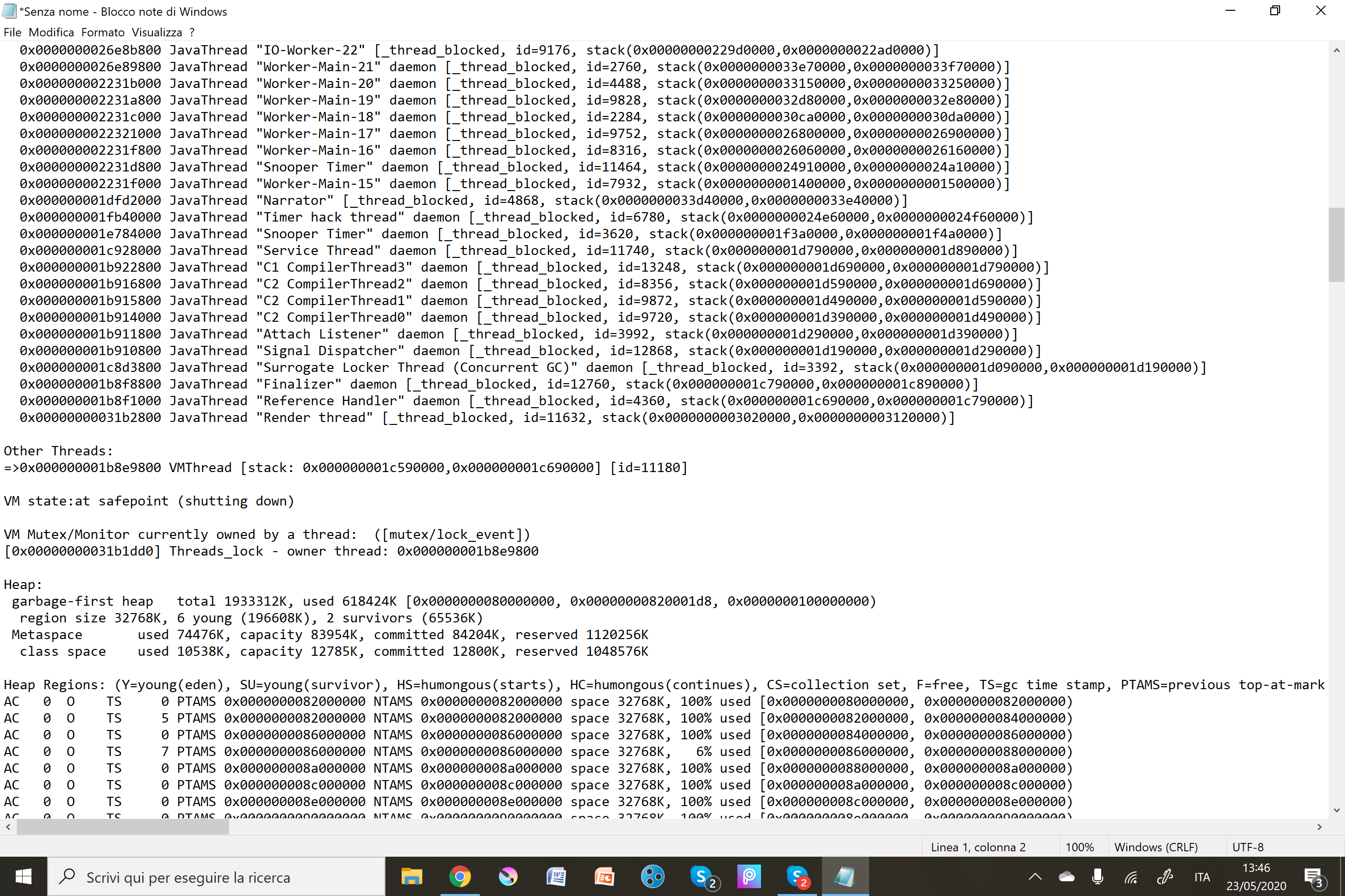 I was playing for some time on 20w21a when at some point the game closed. Every time I try to re-enter the world, after 10 to 20 seconds the game either completely feezes or just shuts down. It doesn't seem to happen in other worlds. I attached the crash report just in case it is useful.