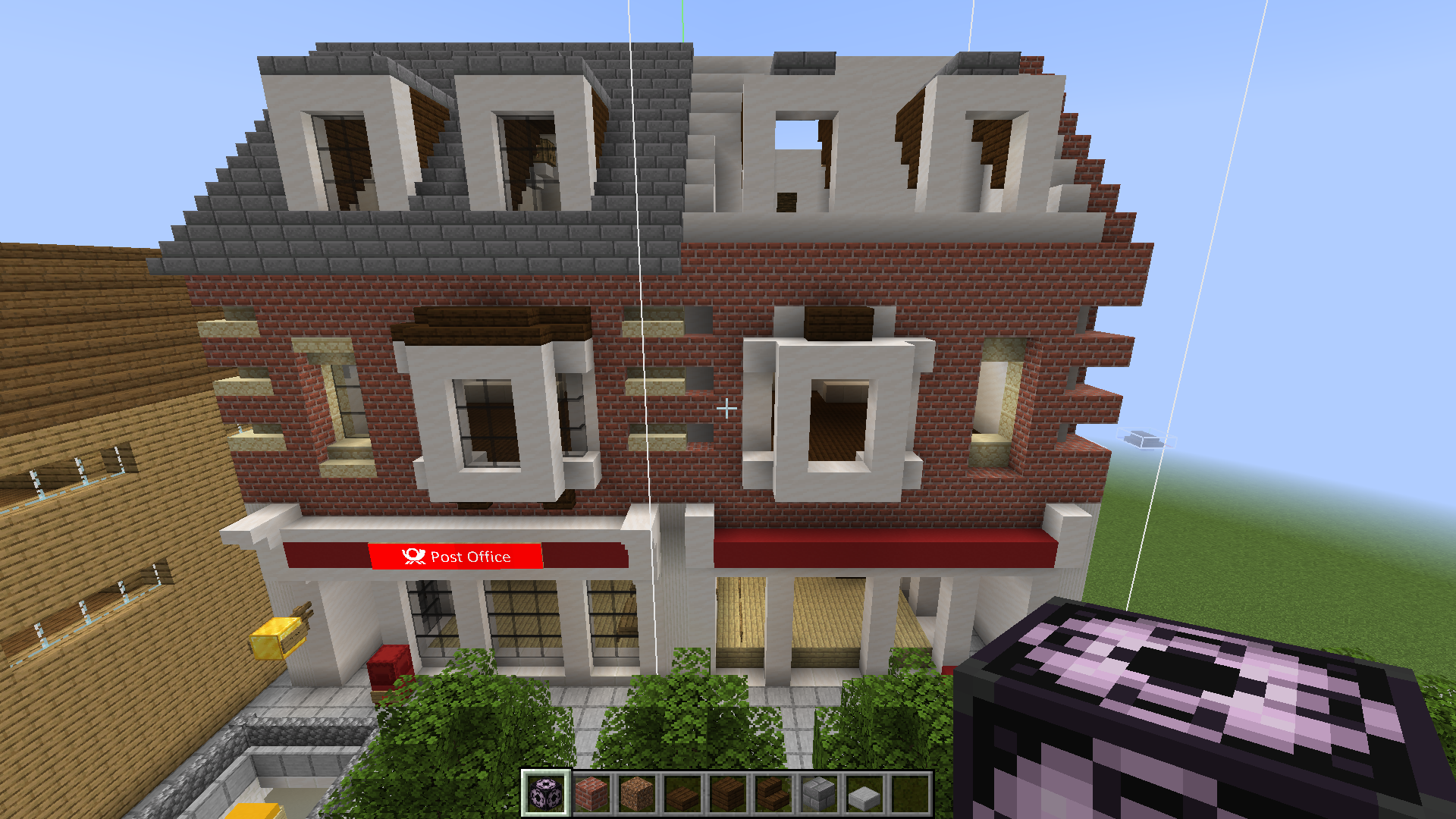 I have done some playing around and I suspect it has to do with the custom signs. I split the structure into rows and there are three that don't seem to work - the three with custom signs. For reference, the signs say: POST (2nd line), OFFICE (2nd line) and POST BOX (2nd and 3rd line). These signs were created with commands a couple of years ago and I know the commands have changed since then. Could it have something to do with that?