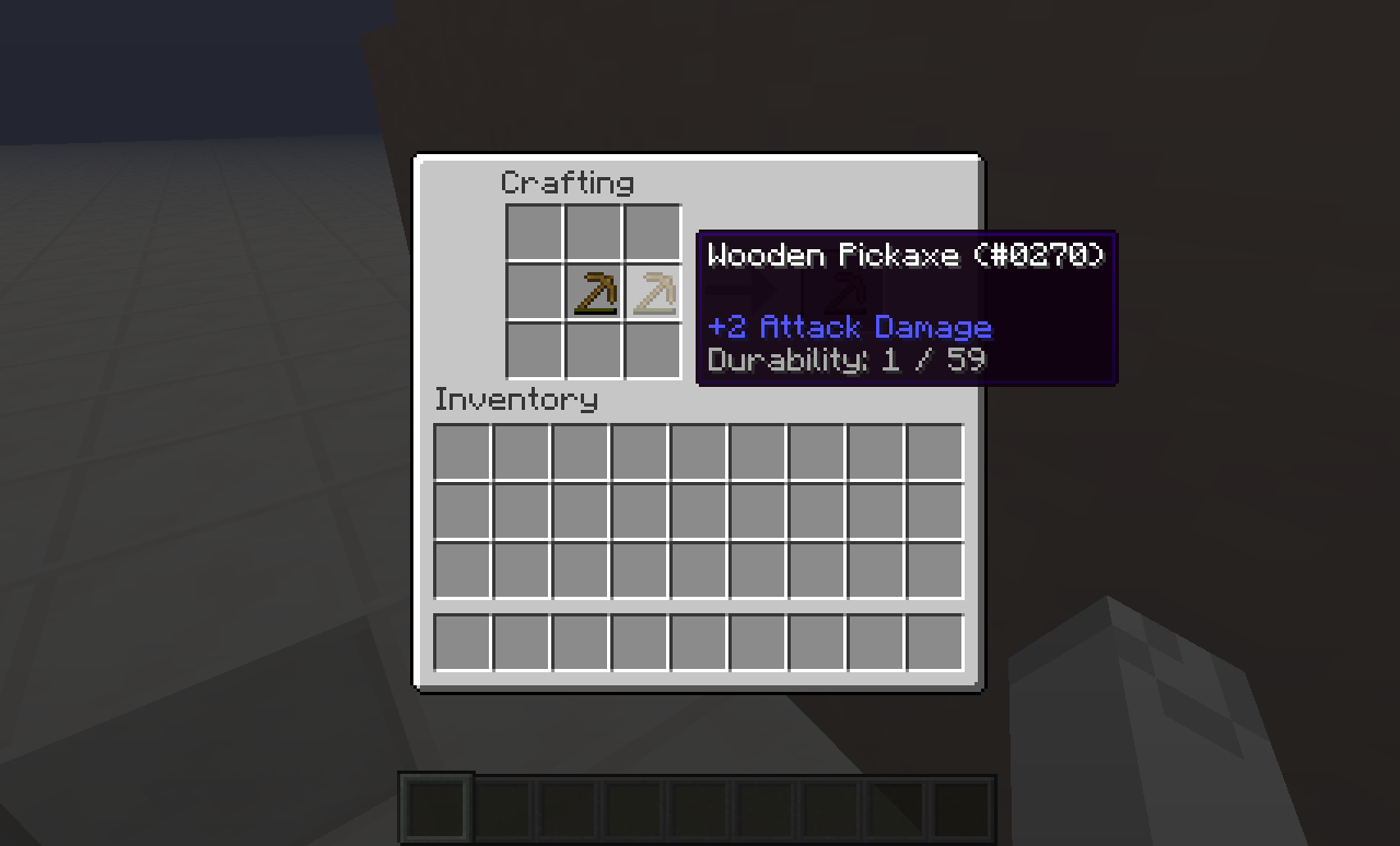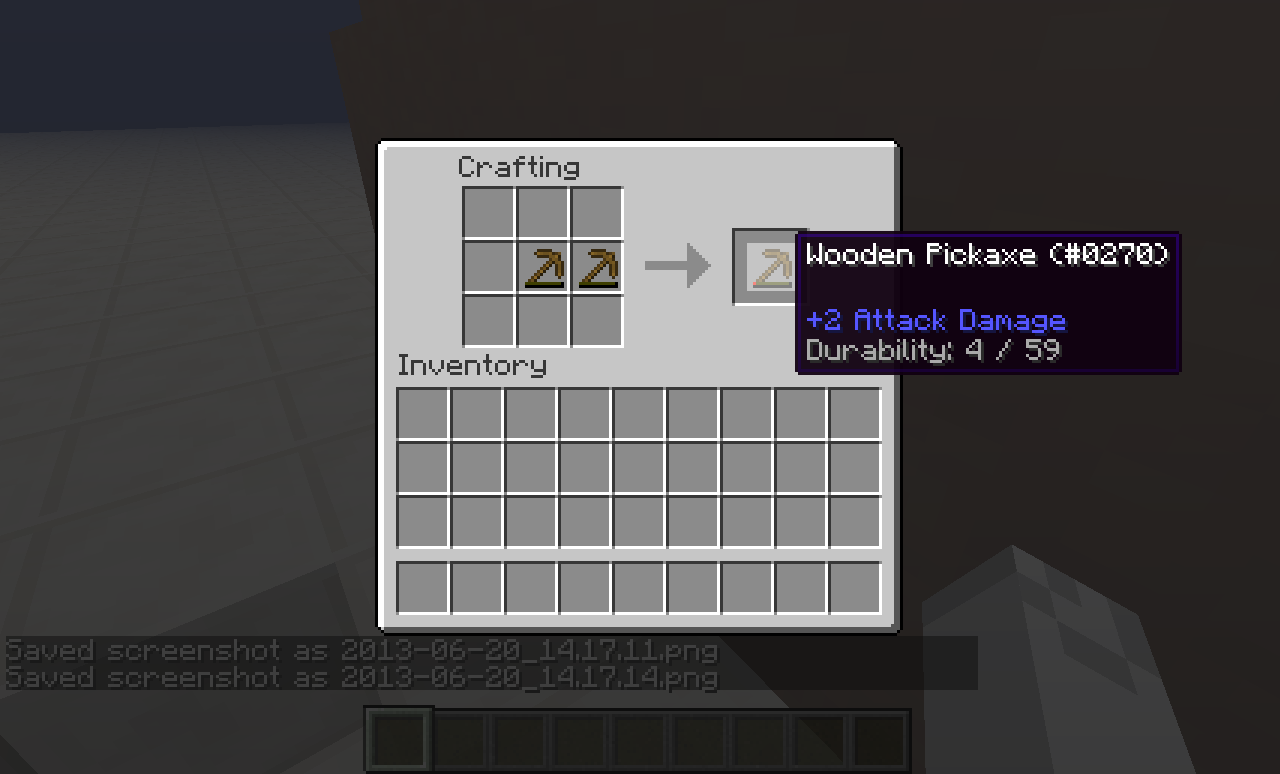 Wood Pickaxe: Crafting: 4/59, Anvil: 9/59