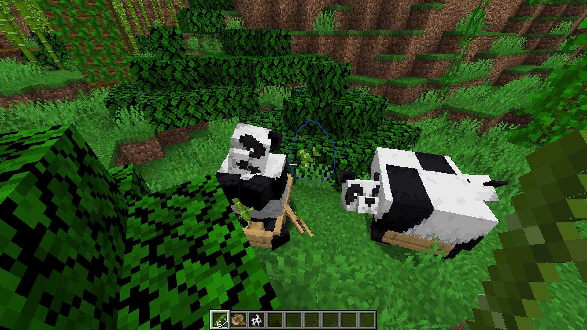 Irregular, misplaced eating particles for pandas sitting in boats. Where the eating particles are showing up, depends on where the player is standing. Its the same problem if two or only one panda is in the boat.