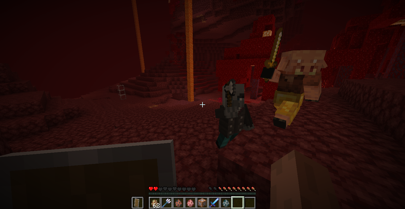 Piglins with a sword, pickaxe, shovel, axe and a hoe or any item raise their arm in a similar fashion to the vindicator's or a zombie's attacking animation, but swings their arms similar to a player. It doesn't happen to the following:
