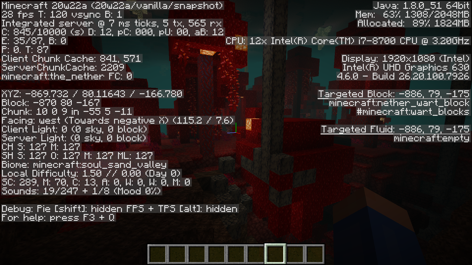 This screenshot was taken on the seed -769589120886783917 in the nether dimension at the coordinates (-869, 80, -166).