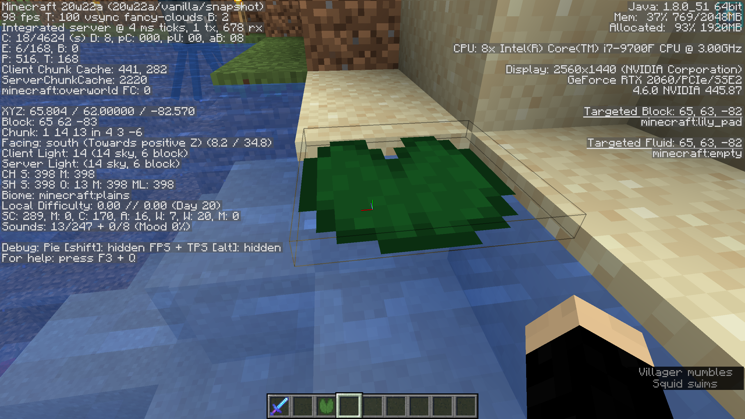 The block outline / hitbox of lily pads still renders transparent when water is directly behind it, and was not fixed with MC-166717.