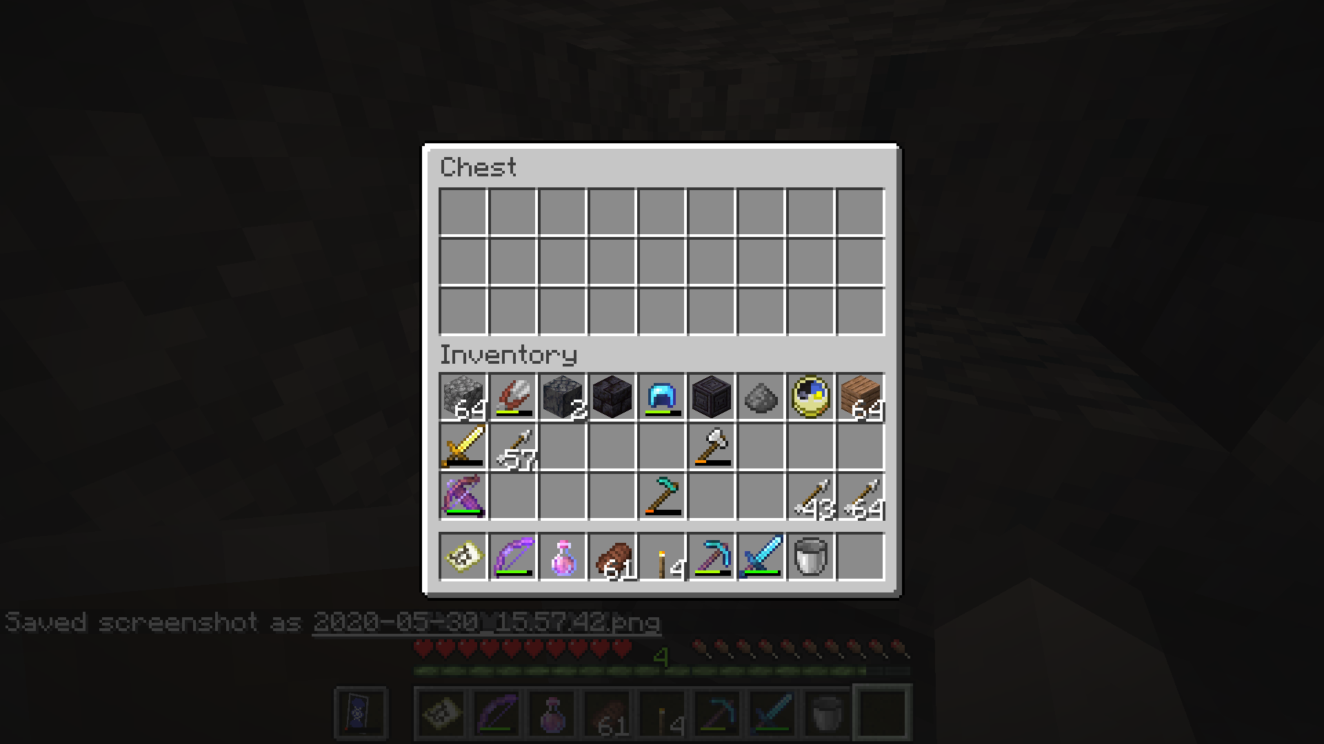 Below I've provided screenshots of the chests outside and inside (I had to cover them in cobblestone so Pigmen wouldn't attack me)