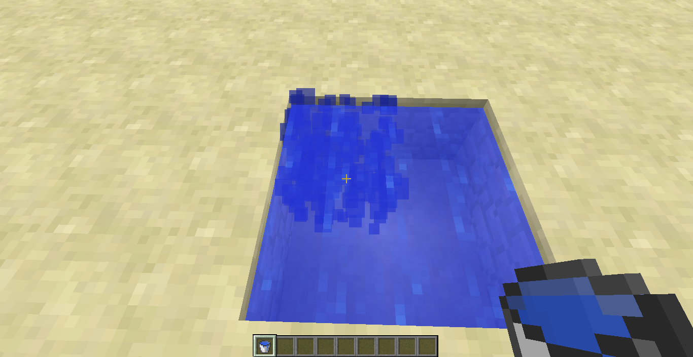 This particle bug when water is placed in an existing flowing or source water is experienced in both survival and creative mode. Also, when placing the water, there is a breaking sound that you can hear.