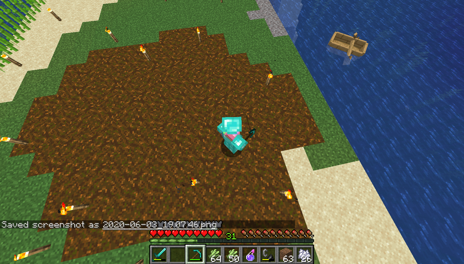 invisible diamond pickaxe in hand