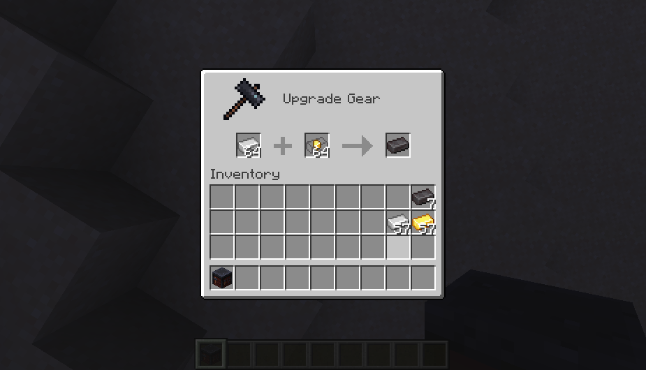 As a result of the addition of smithing recipes in 1.16 Pre-release 1, the Netherite Ingot frame in the last Smithing Table input slot no longer fits for all items.