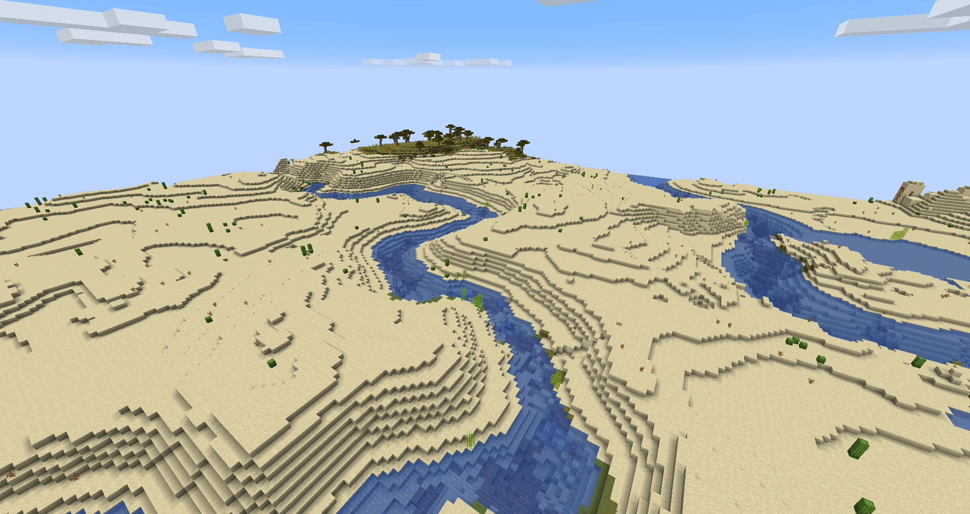 I decided to create a new world, I put my world type to "Large Biomes" and Then Click Create, I spawned in a Desert and I found out that the rivers were the same as "Default" world type.