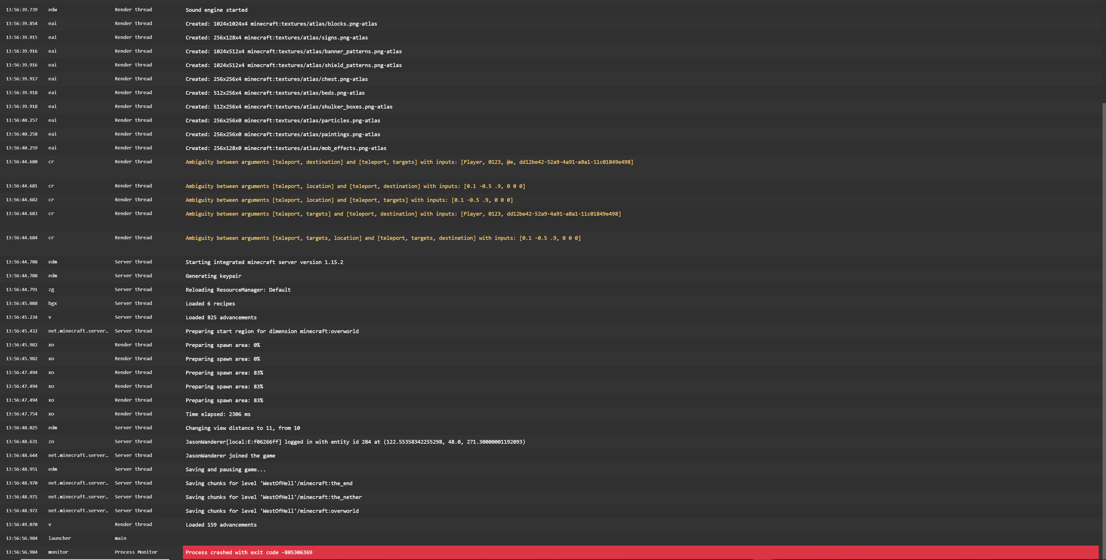 Whenever I launch MC I can get anywhere from 1 - 10 minutes of gameplay before it crashes with exit code -805306369.