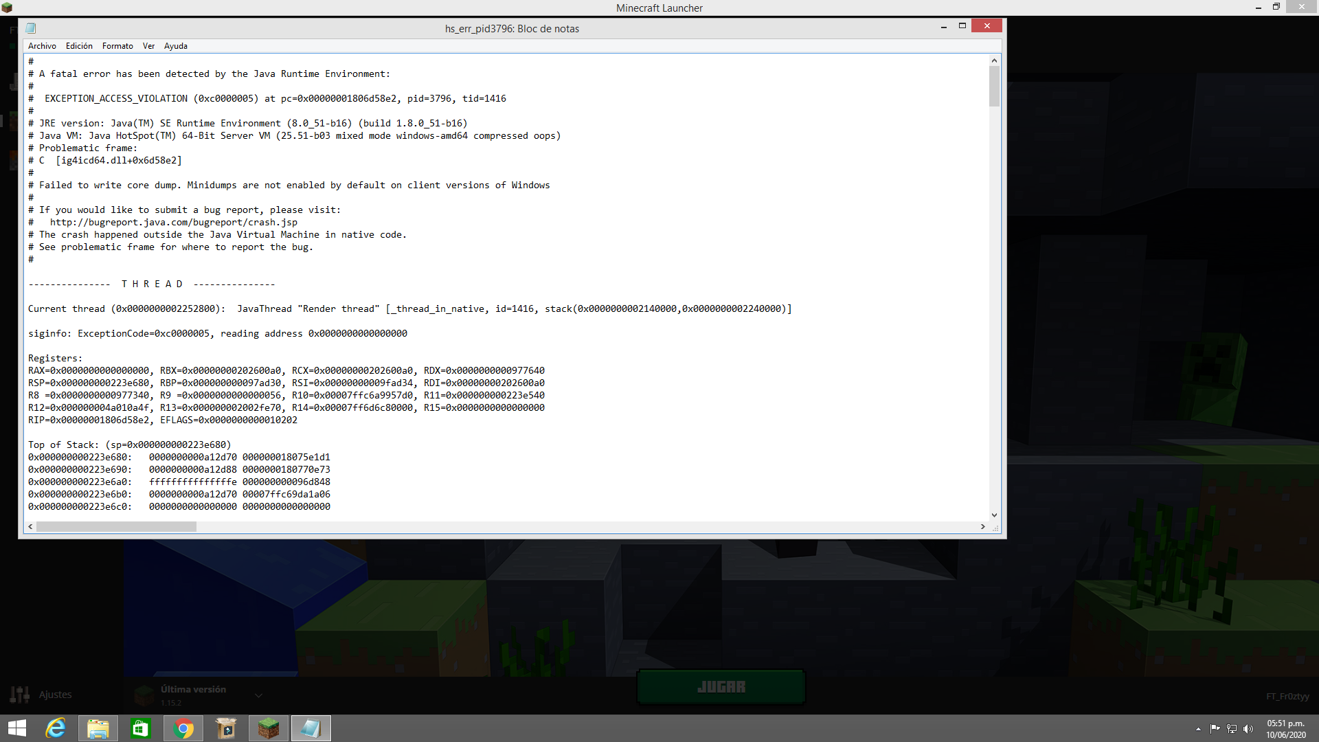 I have a problem that when i try to start minecraft it appears to be a error that i cant solve and then i try to do it and i cant no start the game