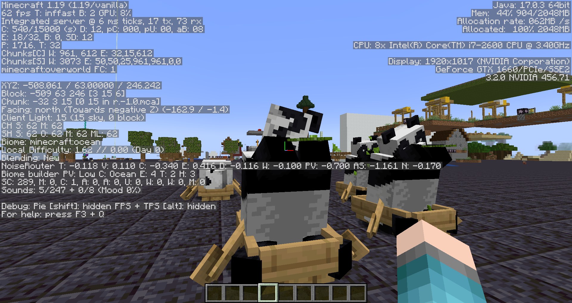 /summon minecraft:boat ~ ~ ~ {Passengers:[{id:"panda"}]}/summon minecraft:boat ~ ~ ~ {Passengers:[{id:"panda"}]}When a panda is in a boat and is eating, its head is completely on its side.