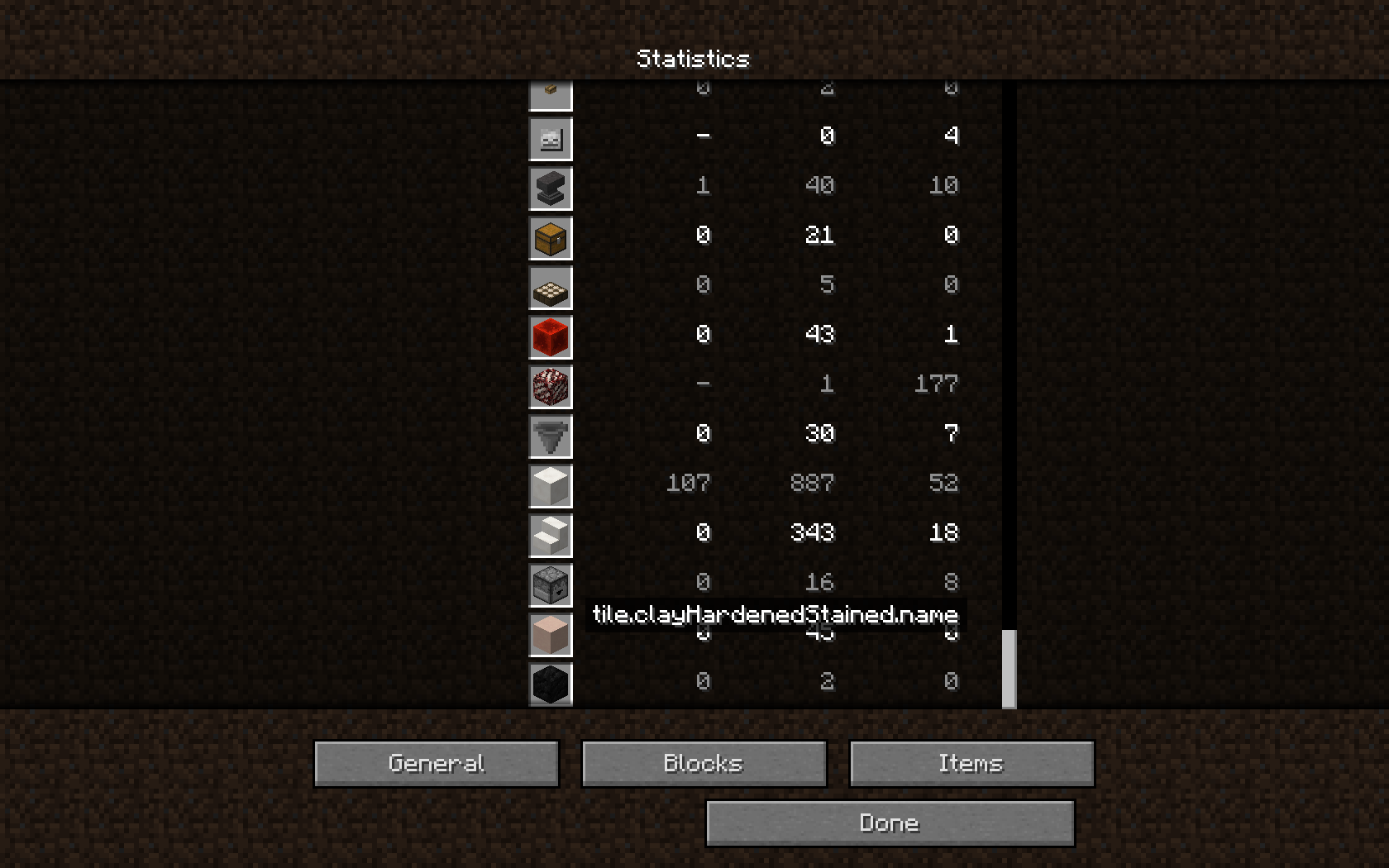 4 Scroll down and find hardened clay, notice it's named "tile.HardenedStained.nane"