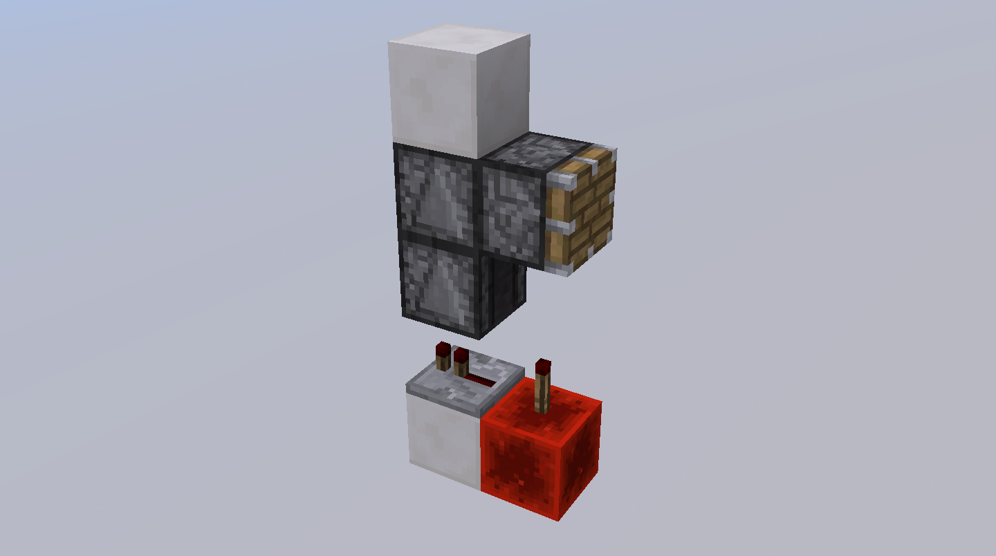 However, if instead a short pulse is sent through the repeater (which has to be on the lowest delay setting!) the circuit behaves differently. The repeater depowers in the same tick the bottom observer powers, but before it is ticked. Instead of ignoring the update, the bottom observer schedules another tick. This causes it to depower before the top observer powers, causing the piston not to extend.
