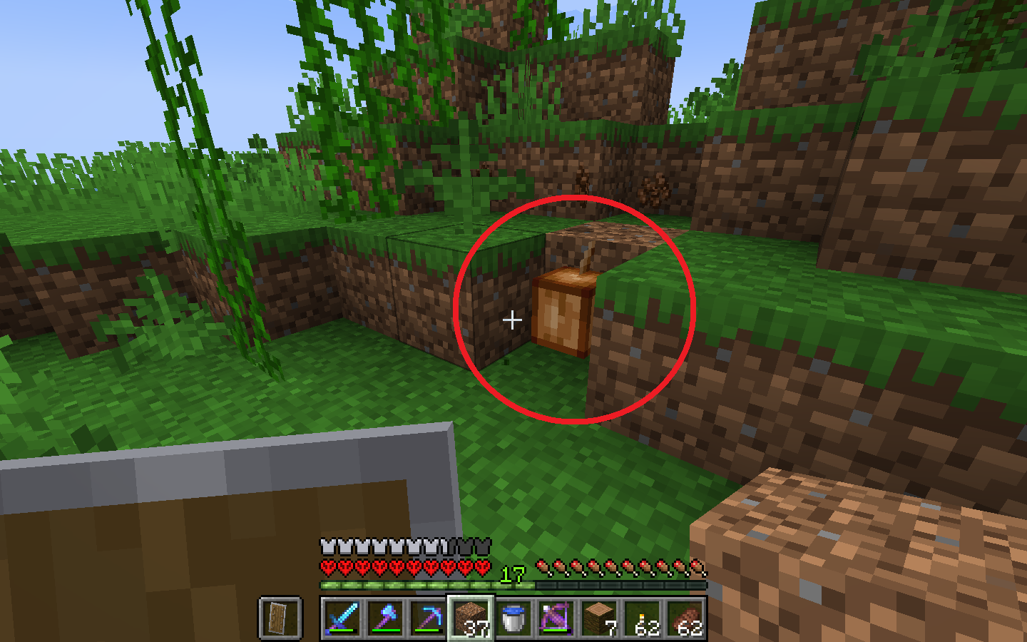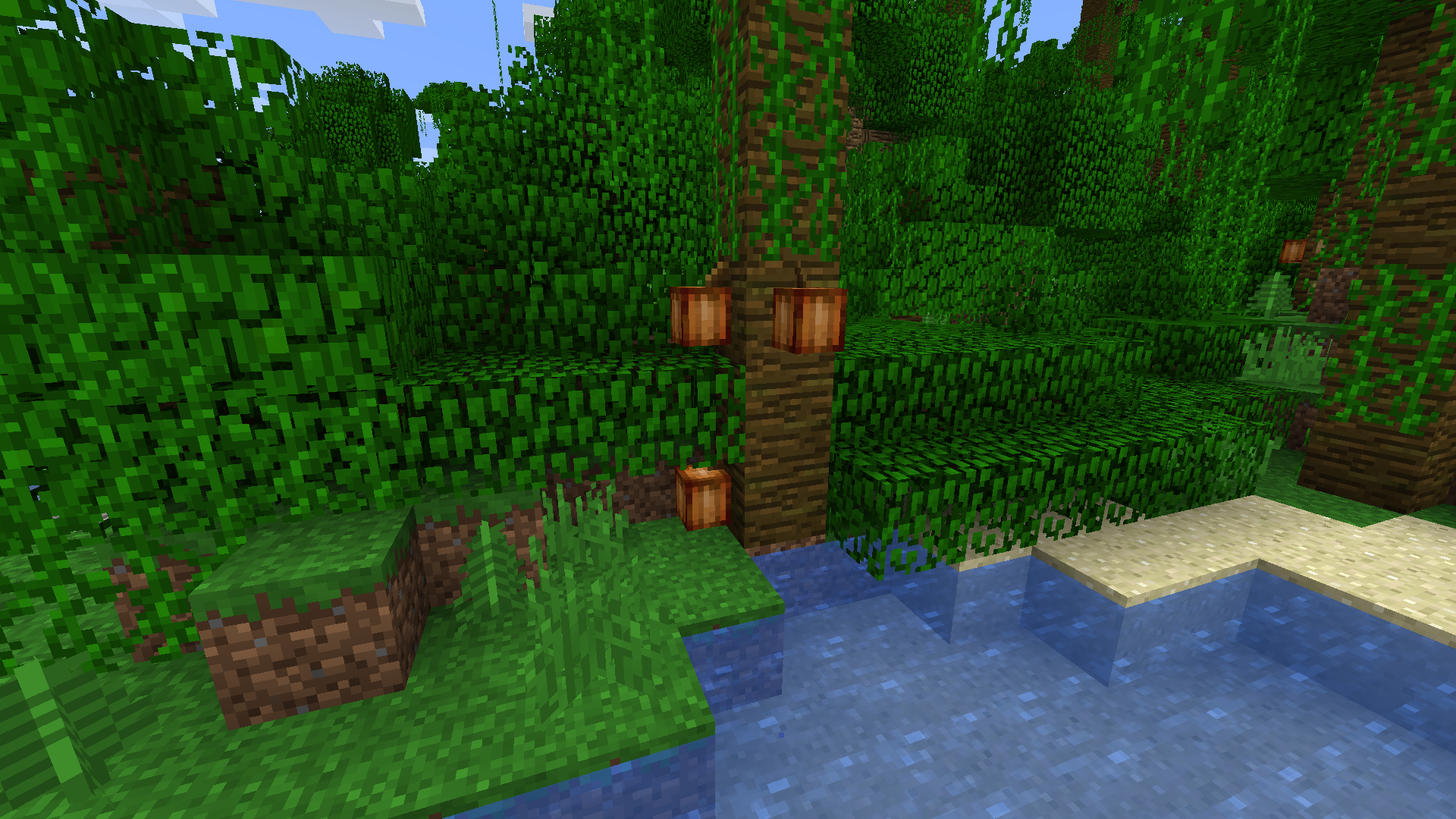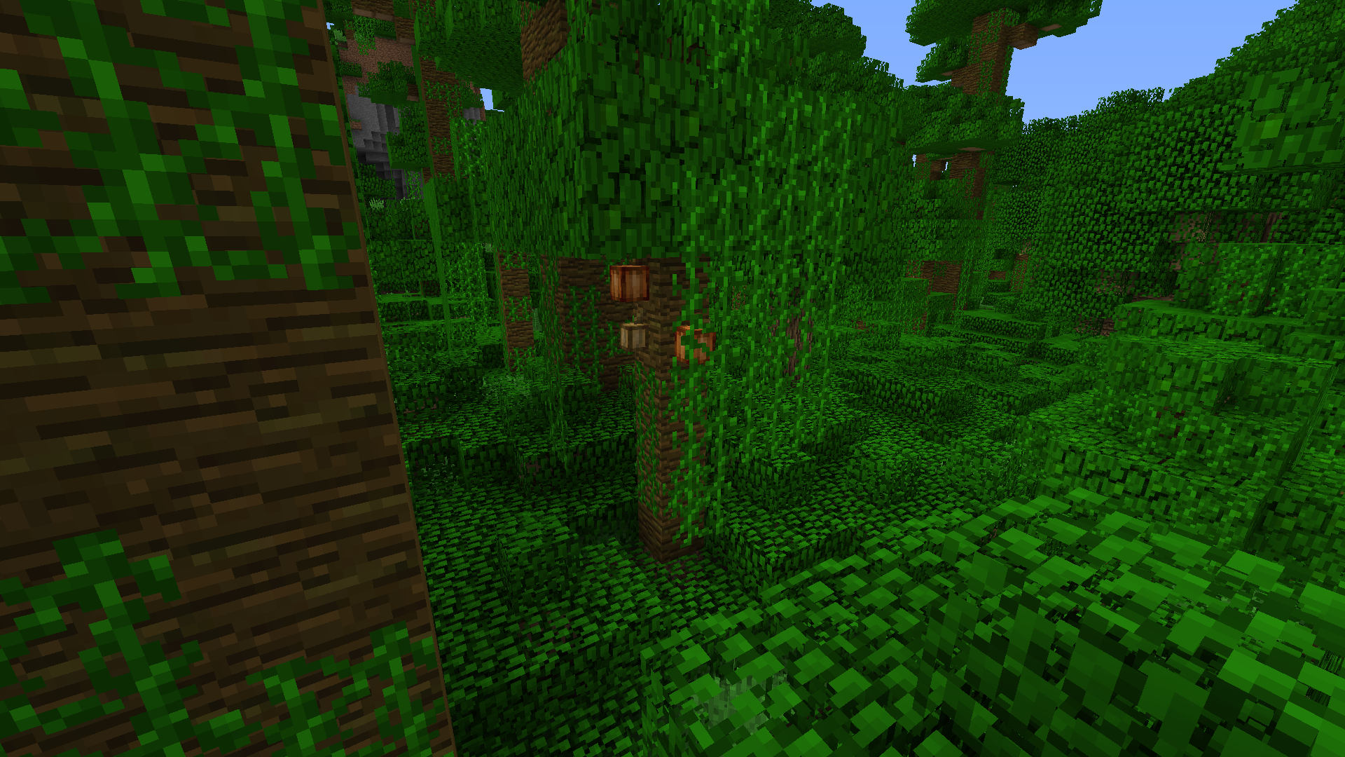 I was able to take a screenshot of the case, but I forgot to note the seed and coordinates, but it is basically possible to encounter this type of natural generation. Previously there was a tree, but I cut it down, it was later when I noticed that there was a cocoa pod growing on a block of earth