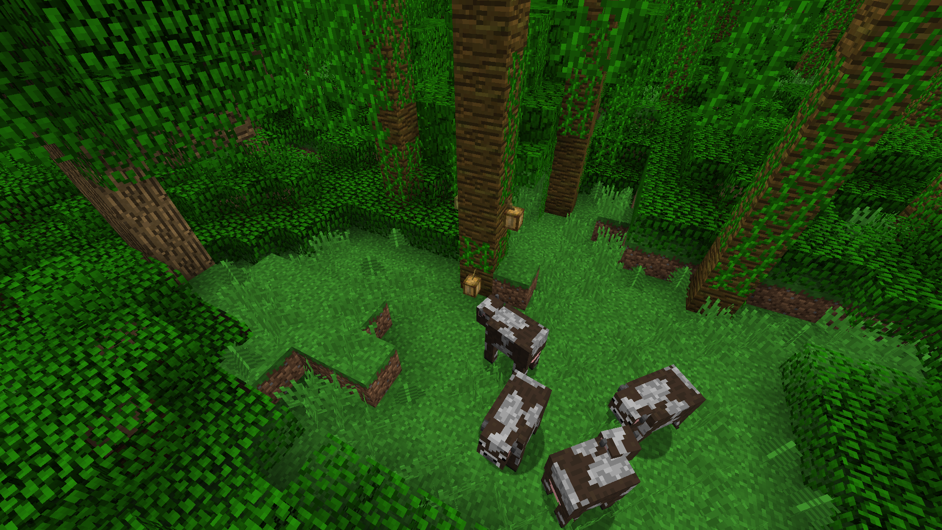 Attached screenshots of naturally generated jungle trees in Minecraft 1.14. Since 1.15, all cocoa pods have generated low at the tree.