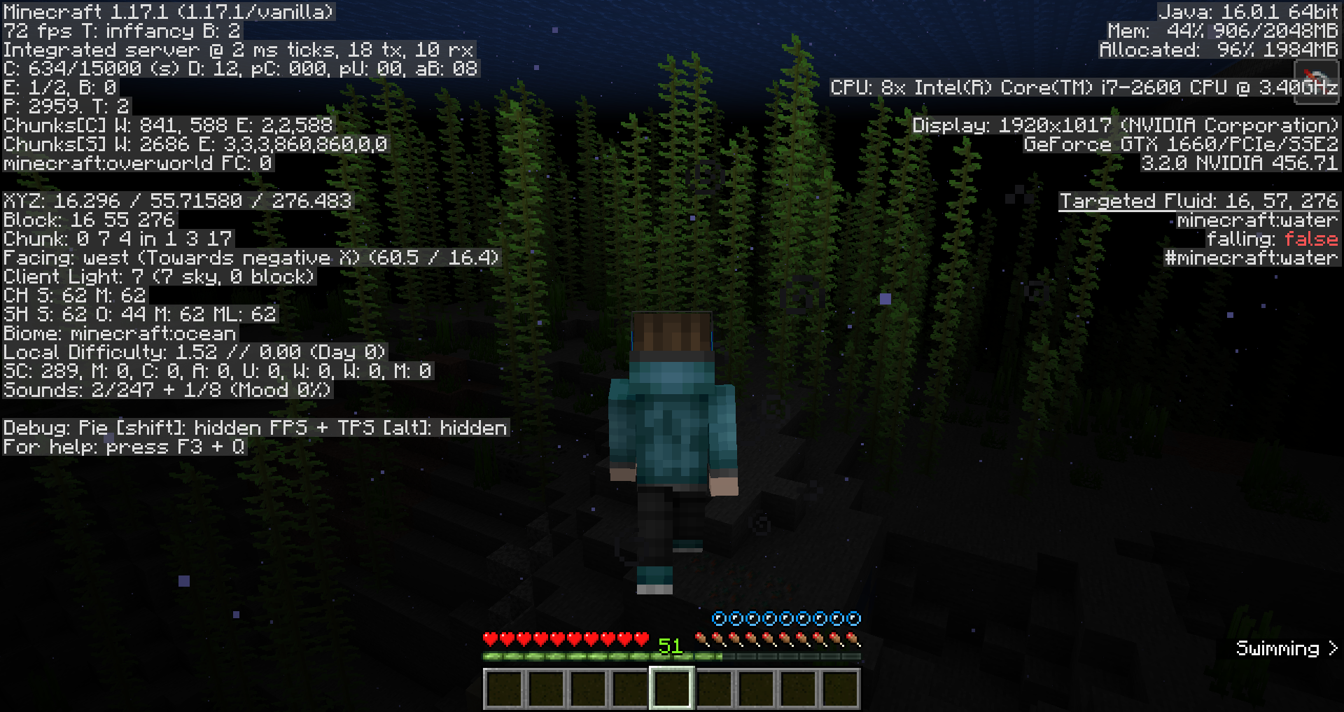 The player will be unable to start swimming if they have the blindness status effect applied.