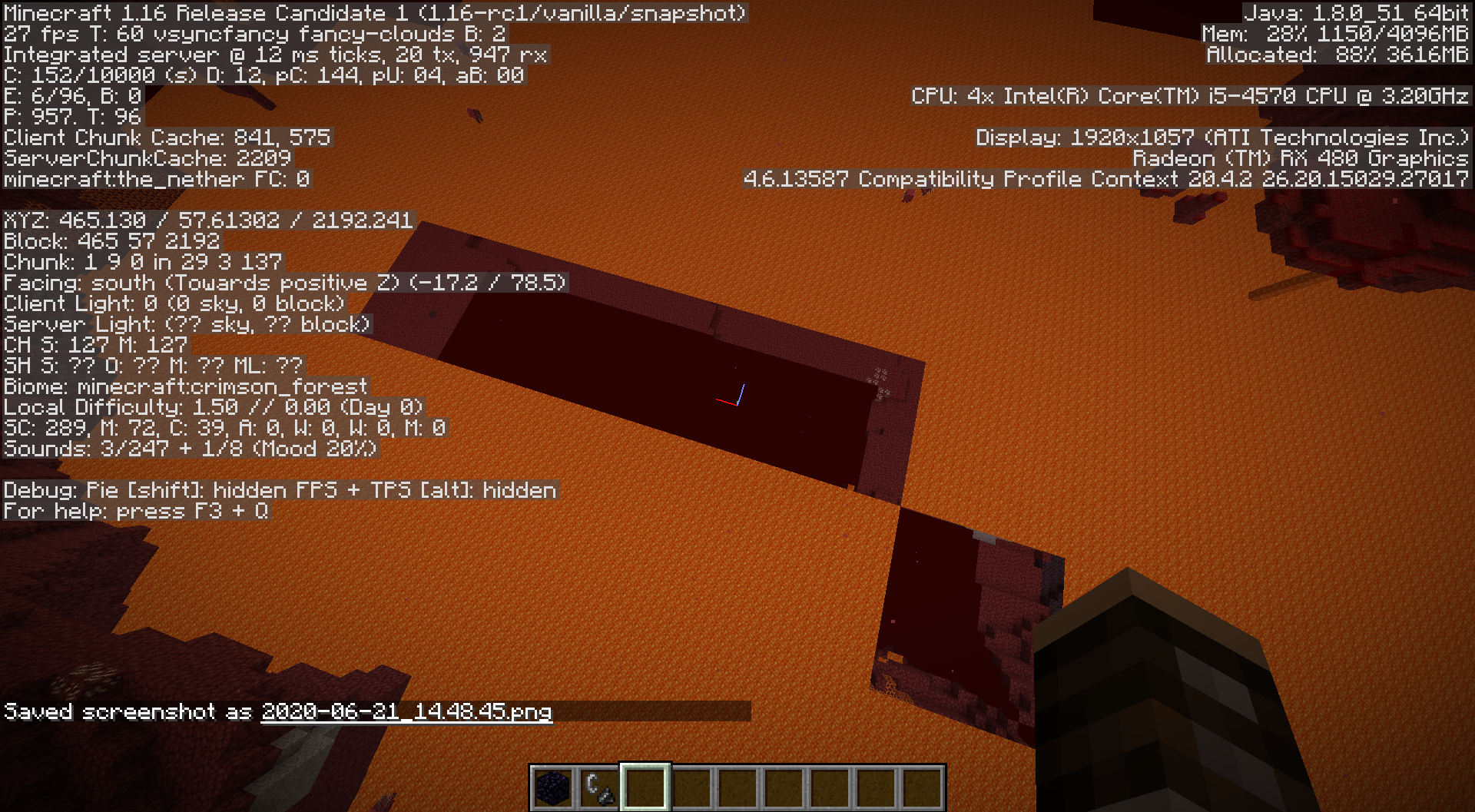 As you can see in the screenshots, chunk loading is pretty slow in the nether. Once you get this, you can stay still in the area and the screen may go blank, and reload partially.