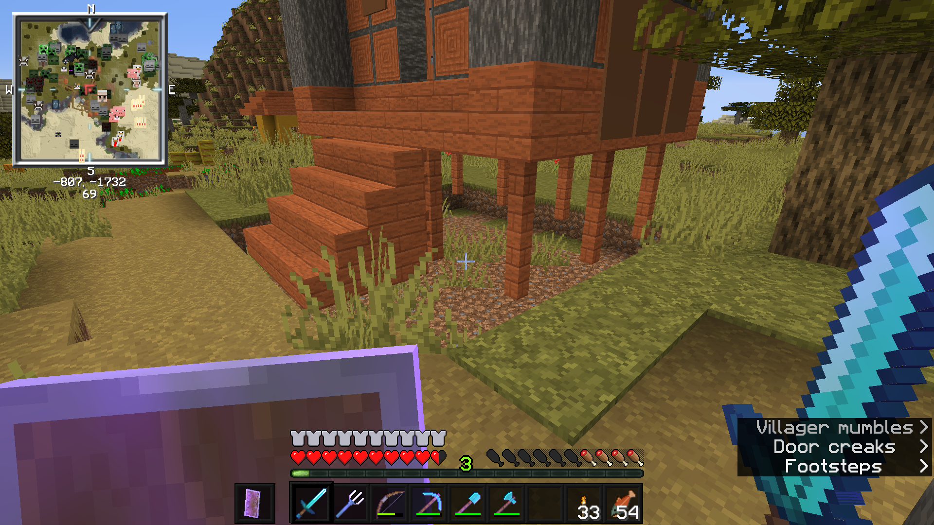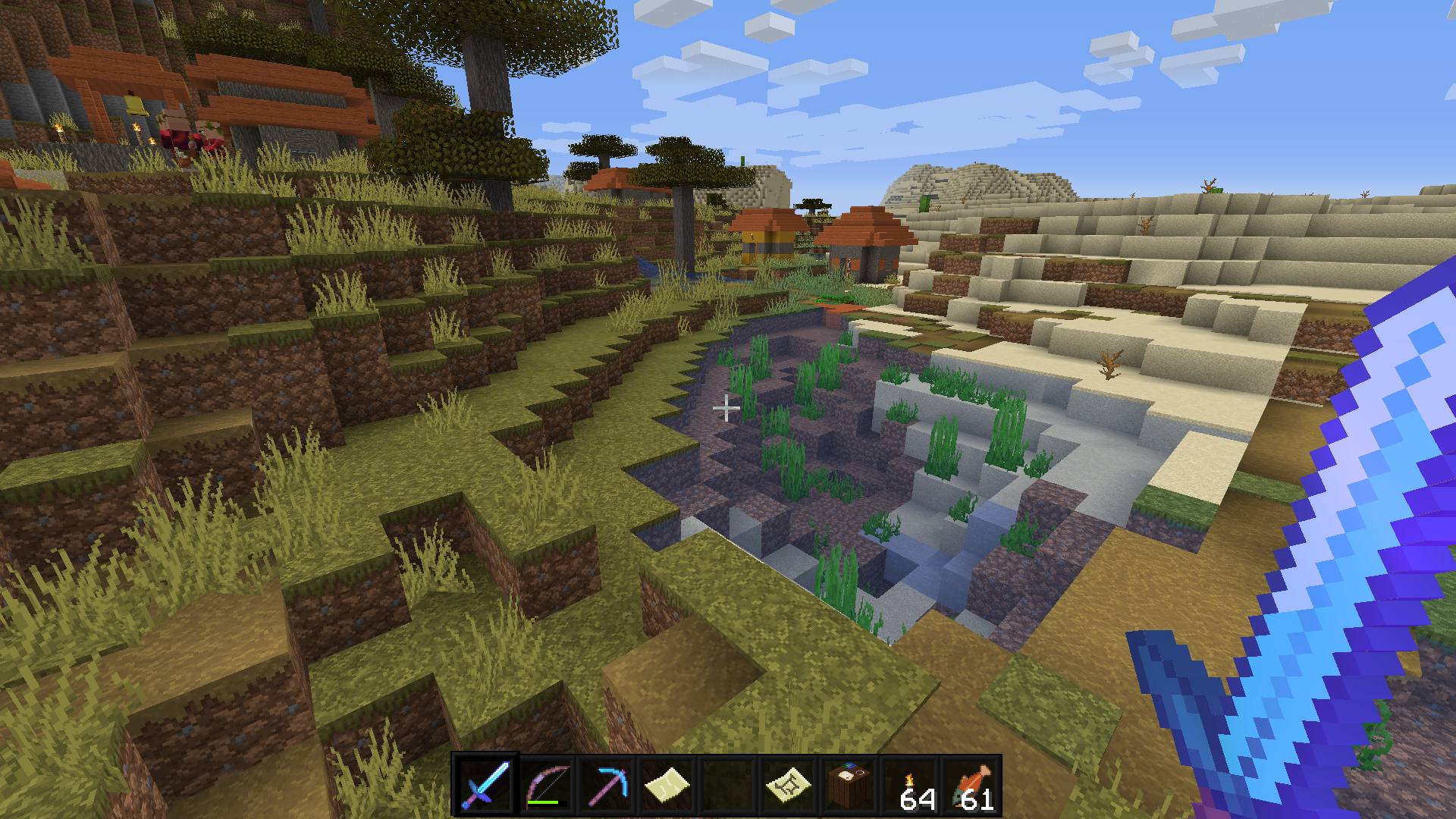 In villages generated in 1.16, grass blocks below structures are replaced by air blocks.