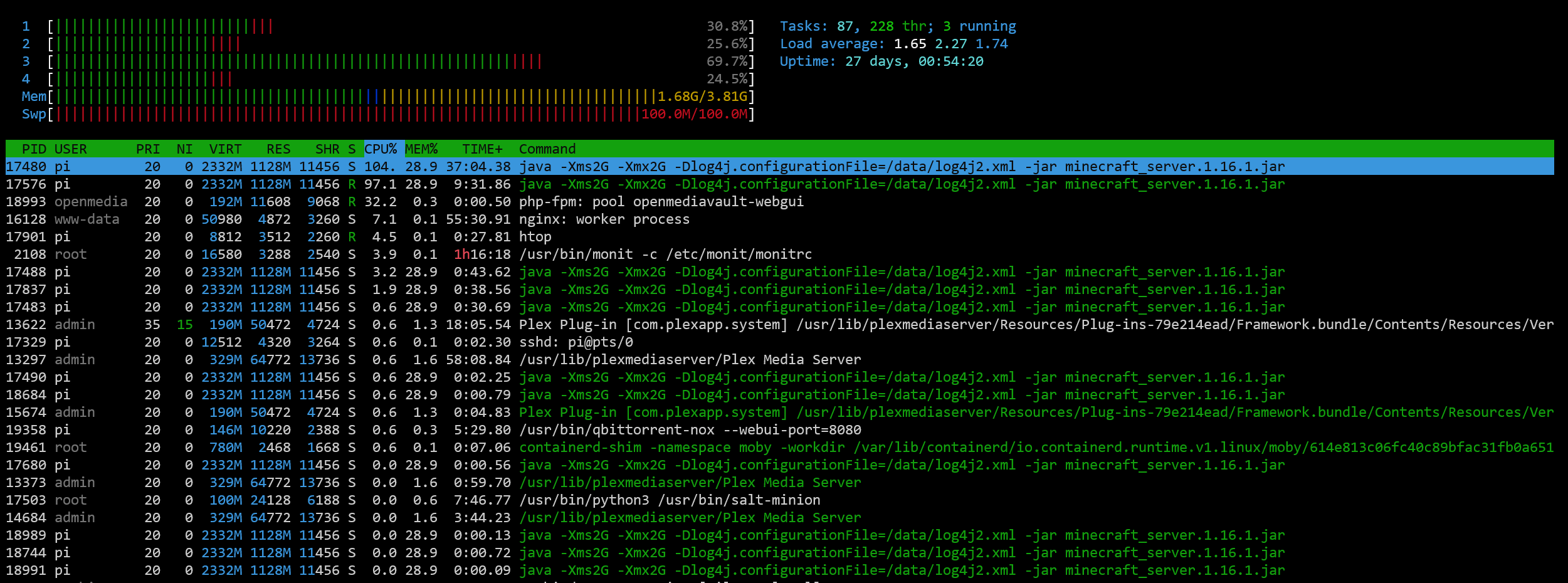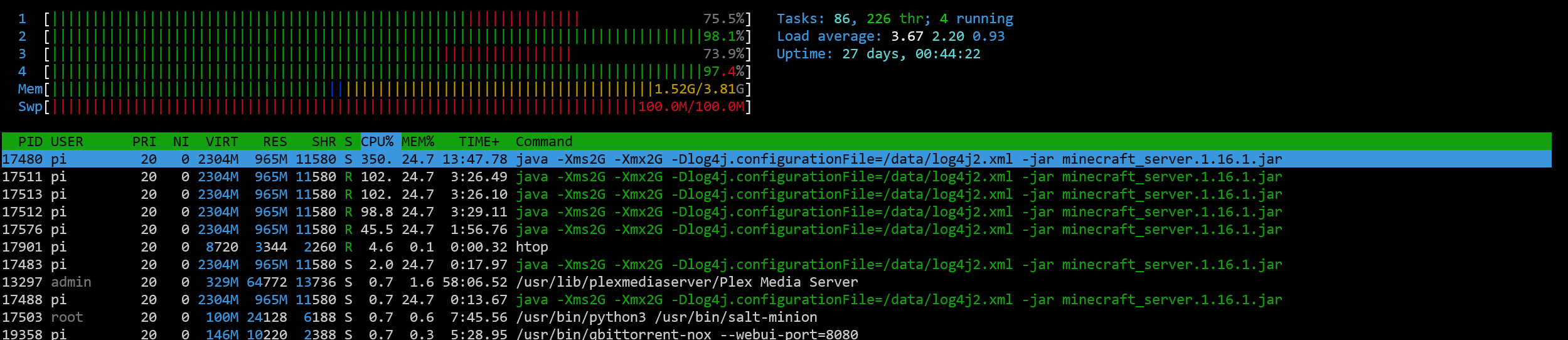 I have this issue as well on my server (Core i7-3770 CPU @ 3.40GHz, 4 core 8 threads, 16 GB RAM), OS: Debian 9.