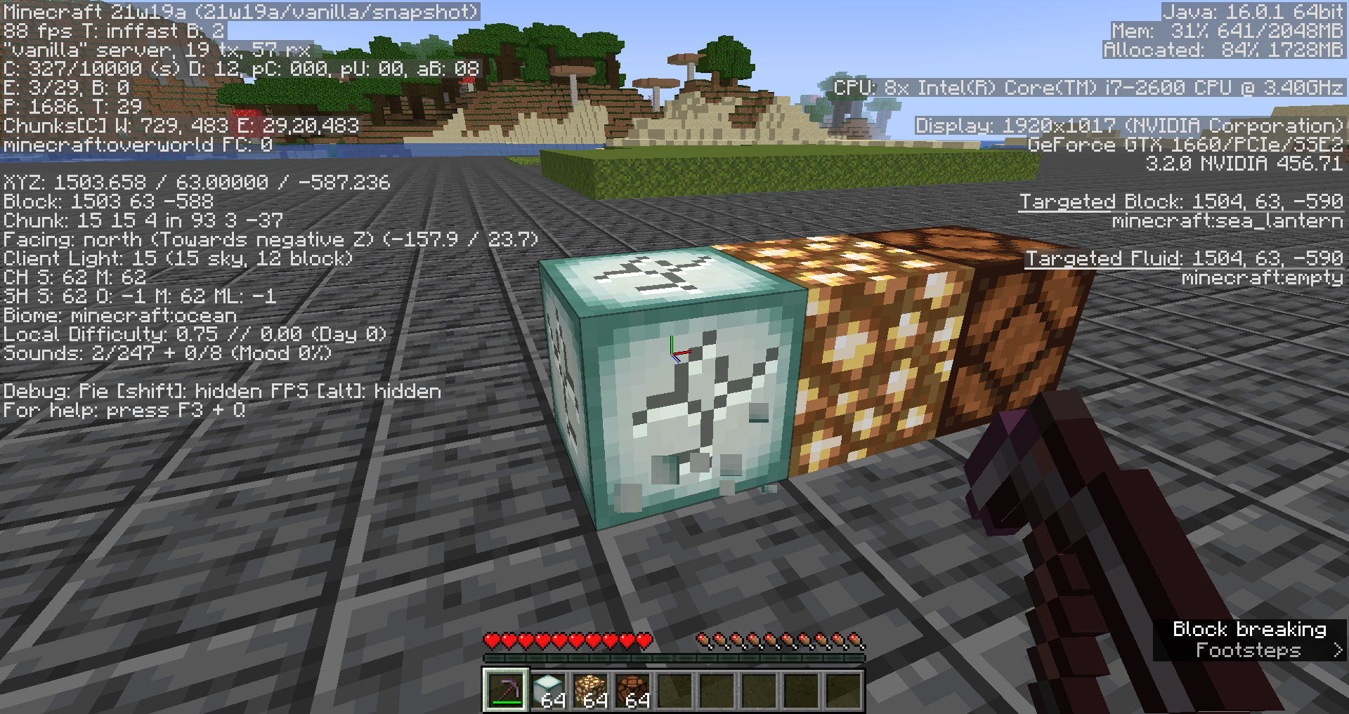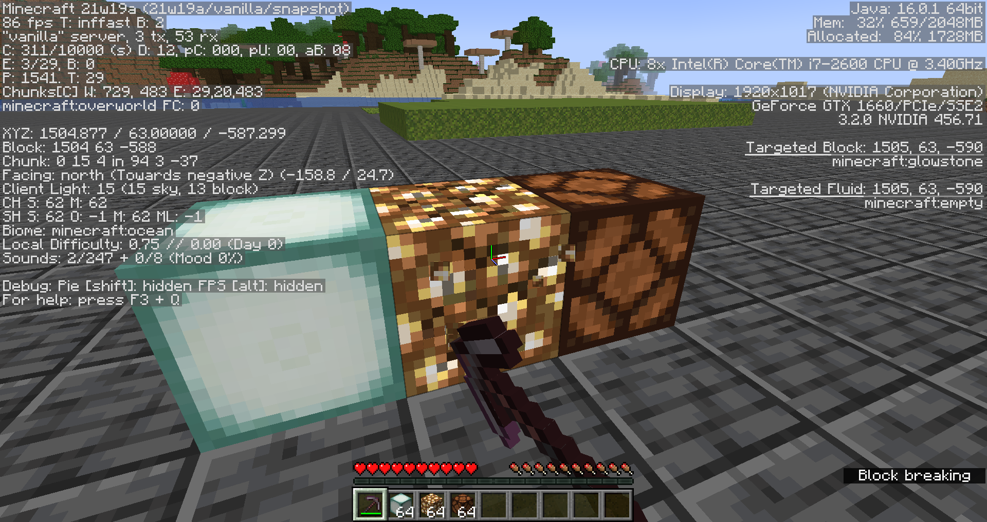 The sea lantern, glowstone and redstone lamp blocks currently have no assigned tool.