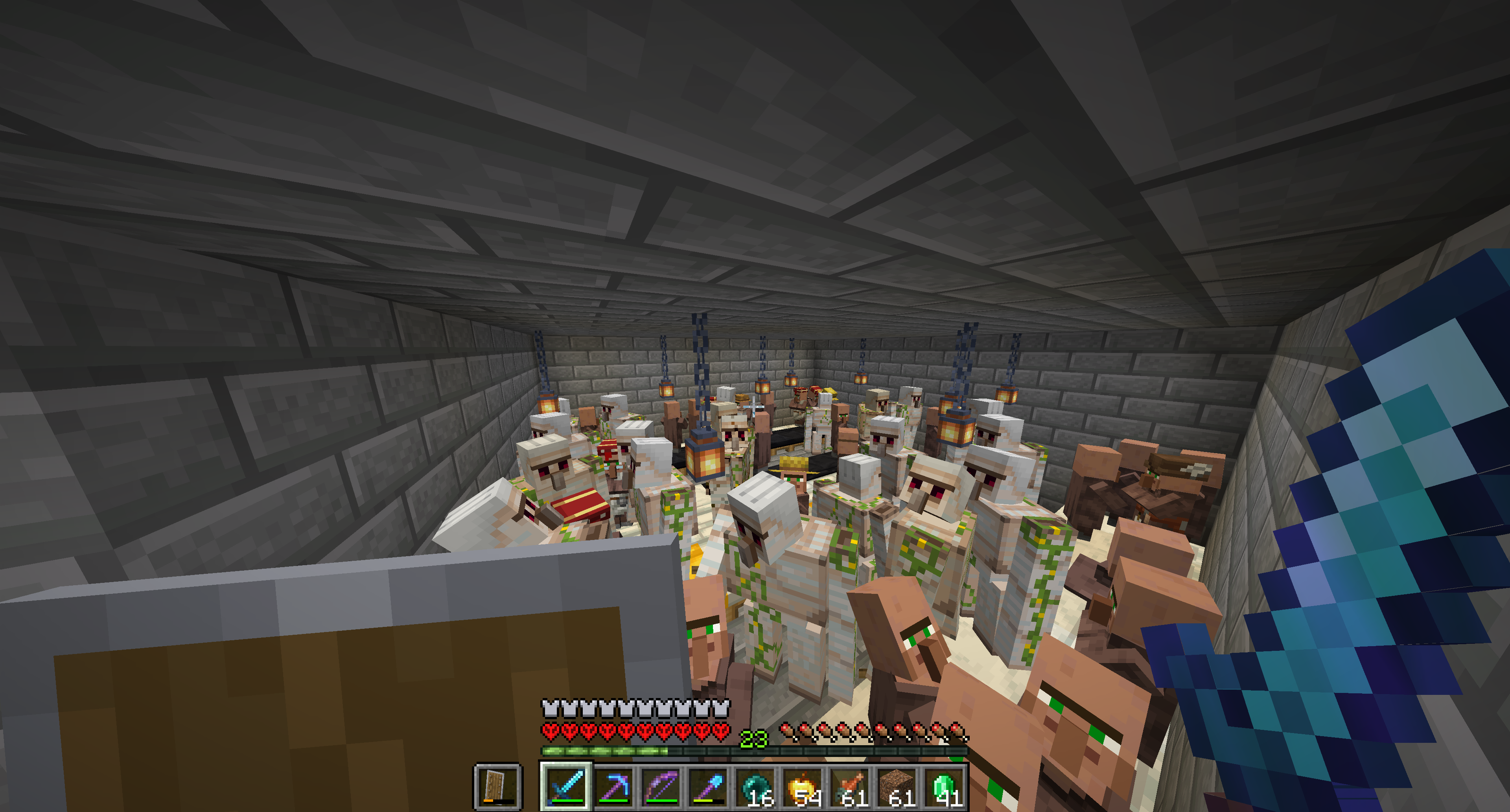I have lots of villagers in 1 huge room, about 30, there has been about 150 iron golems spawn (NO JOKE) and I dont know why, now it is 50 because i killed a lot of them. Could it be because they are in 1 room? Also 10-15 villagers have jobs. The picture below is not all of them, thats just in the one room. I had them in another house and had WAY WAY more, then i moved them and they are still spawning, very annoying while trading. Can someone help. There are also no zombies heard at all or any other mobs in the area.