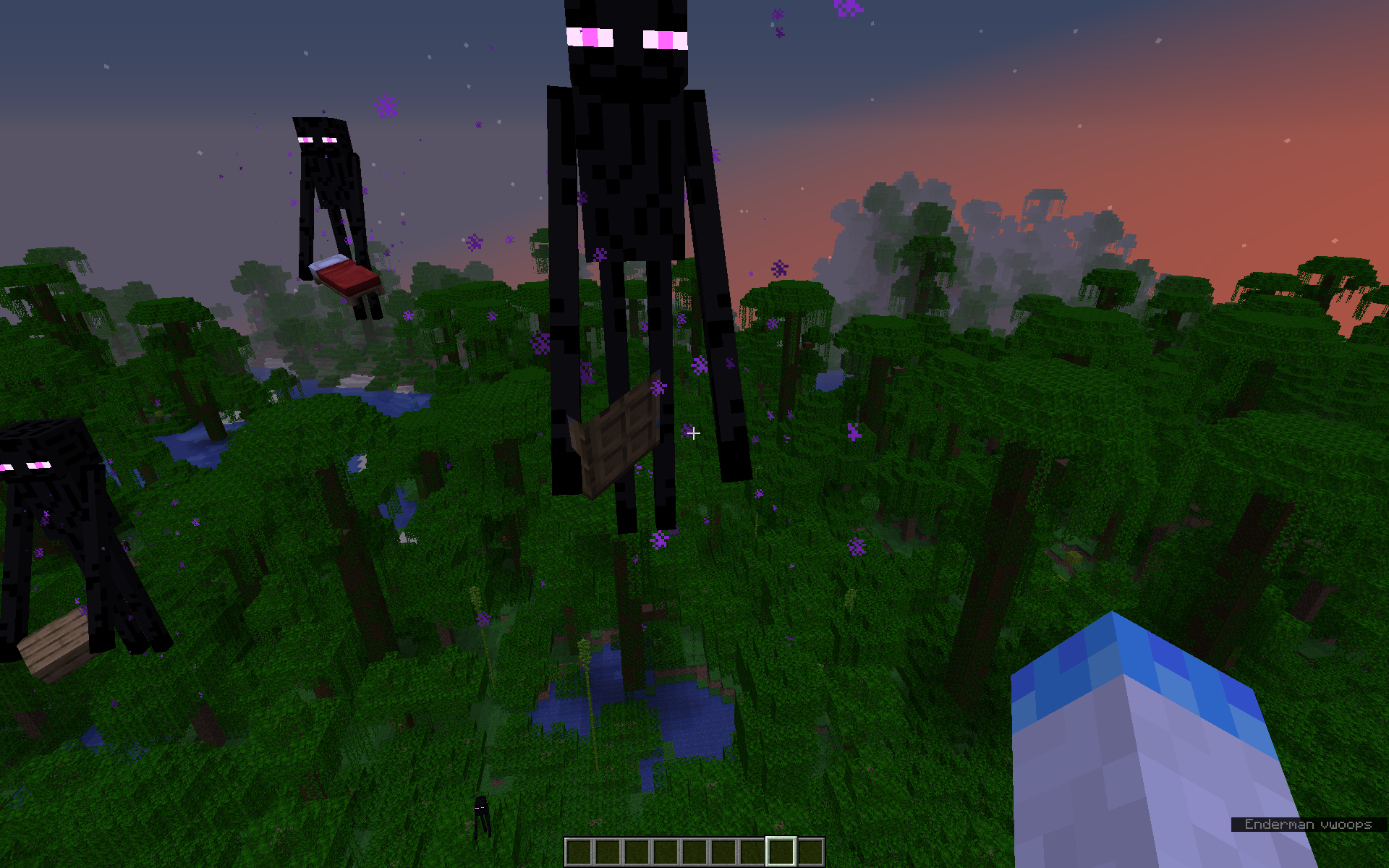 When an enderman is carrying a multiblock block (i.e. a block which consists of multiple blocks) other than a bed, only the respective part is rendered instead of the complete multiblock block. For example only the lower half of a door is rendered instead of the complete door.
