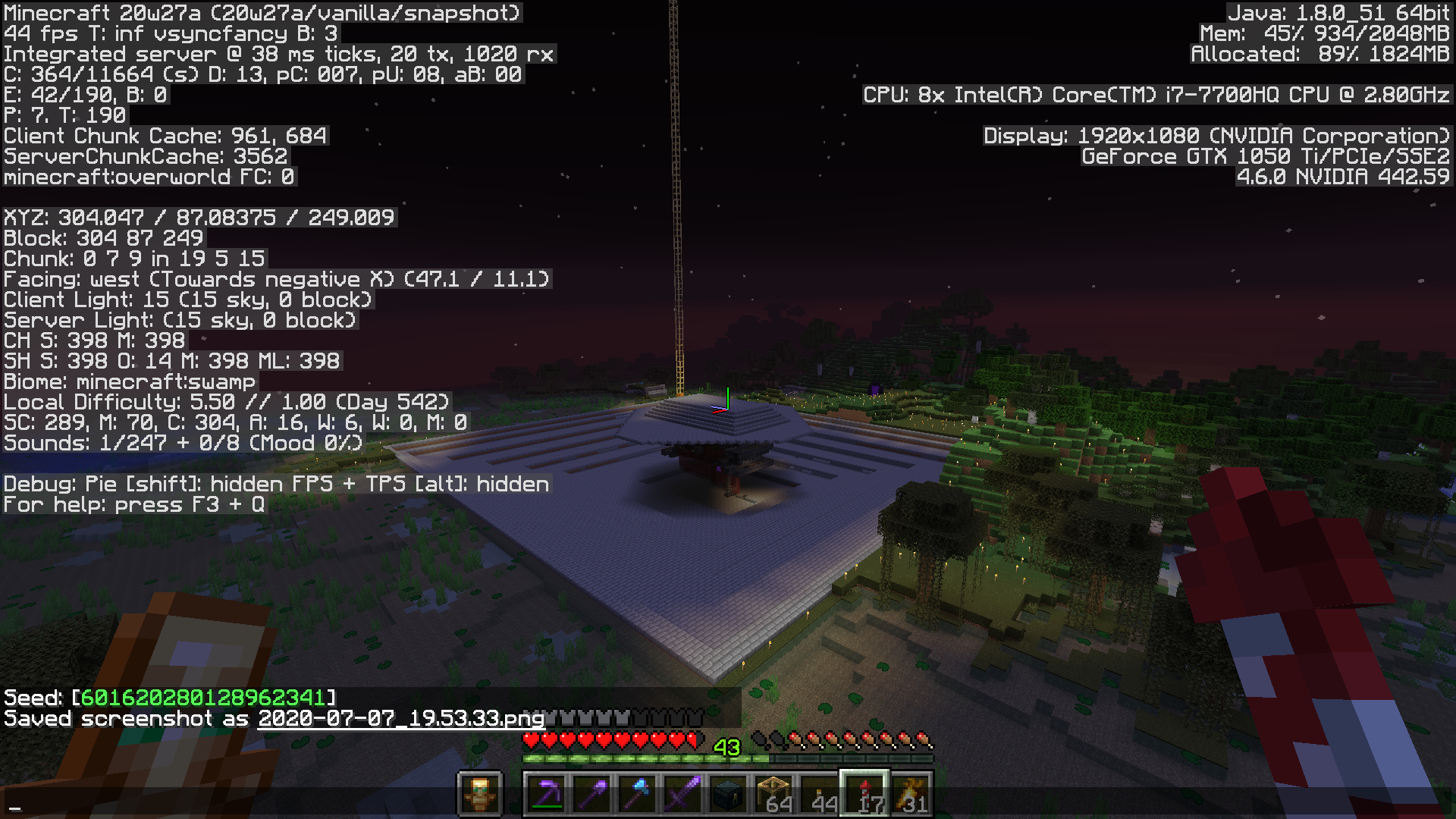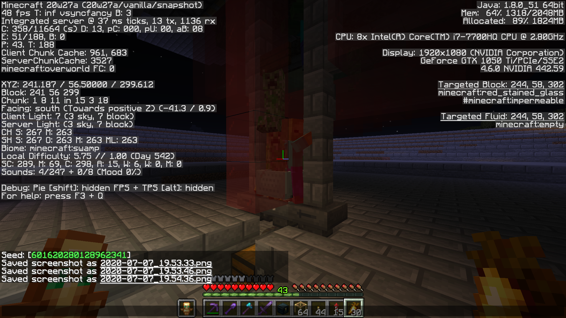 Mobs that used to not spawn in a witch hut now do. The witch farm that I have used since 1.15 now spawns mobs other than witches in this current snapshot. Witches still spawn, but very rarely. I do not know if this is due to passive witch spawning or if it is from the witch hut. The screenshots show that there is a witch hut in a new world at the same position. The other screenshots are of the issue.