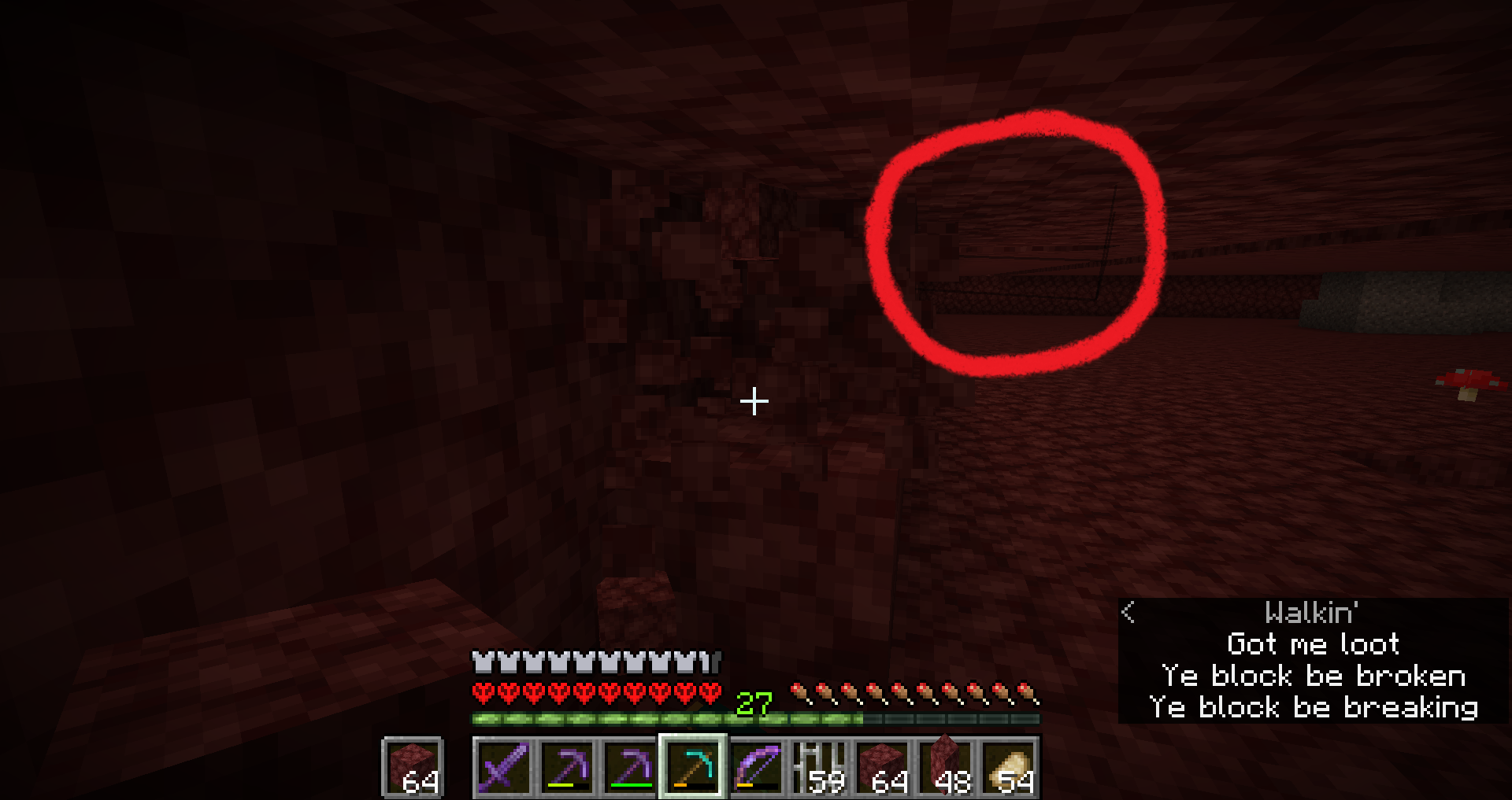 While this occurs, the block that the player is looking at no longer becomes outlined, as if the weird block outline is moved from the block being viewed to the air.