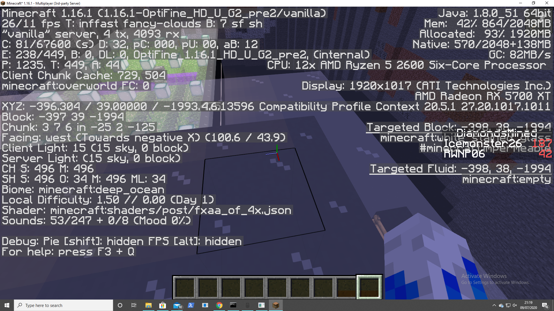 Please provide a screenshot of your game while you are on the server with your F3 debug screen enabled.