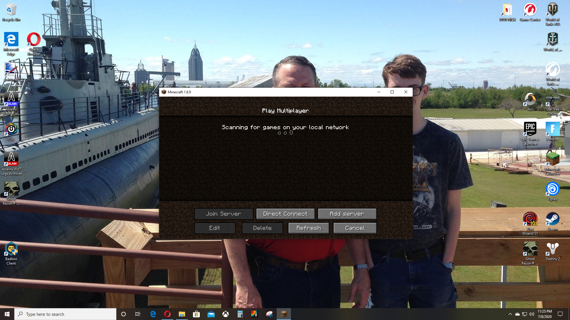 I've been trying to play Minecraft for the last two days with no luck. I select multiplayer then as soon as I do a screen comes up (see attached) and it has a message on it "scanning for games on your local network" and it just stays there. I have no idea what's going on because I had played with problem about 1 week ago but this week when I try I don't get anywhere. 😞