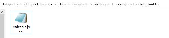 Hi, it seems that using a custom surface builder will cause to prevent showing the new custom biome on the biome list of a single-biome world type/preset. The custom sufrace builder that I'm using is called "volcanic.json" (see all .json on attached files), and the customized biome that is using this is called "birch_forest.json". Also I will provide some pictures of the .json locations (maybe it could be wrong located and causing this issue?).