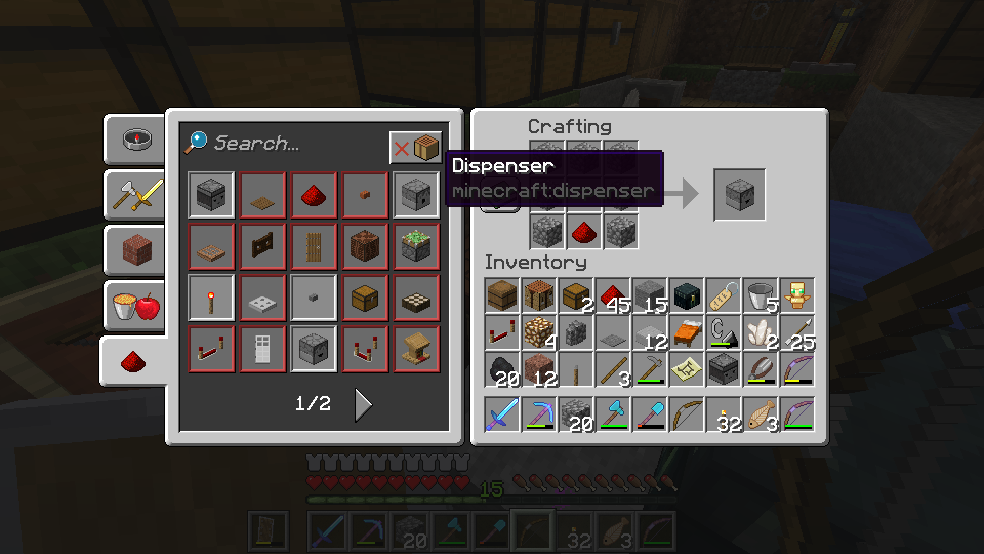 Search or seek the Dispenser item from the recipe book.