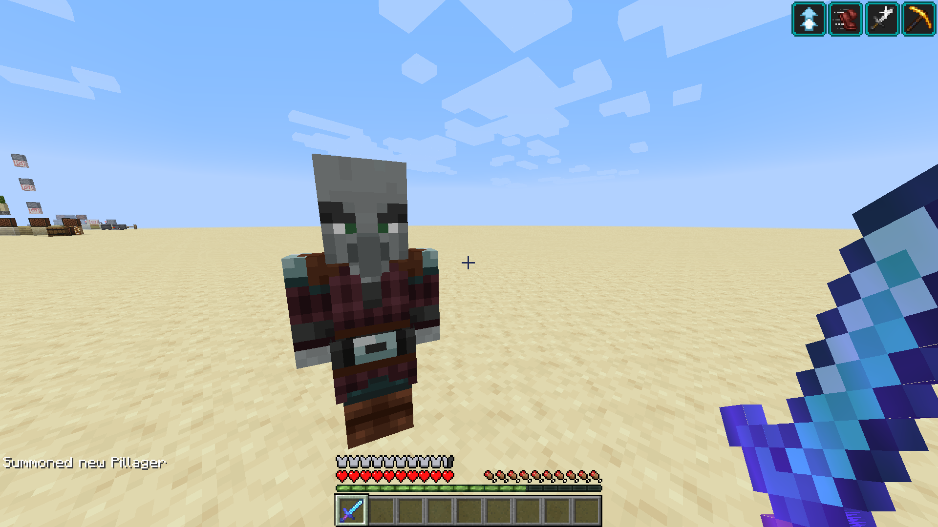 2. You can see that pillagers isn't raising their arms and don't attacking the player.