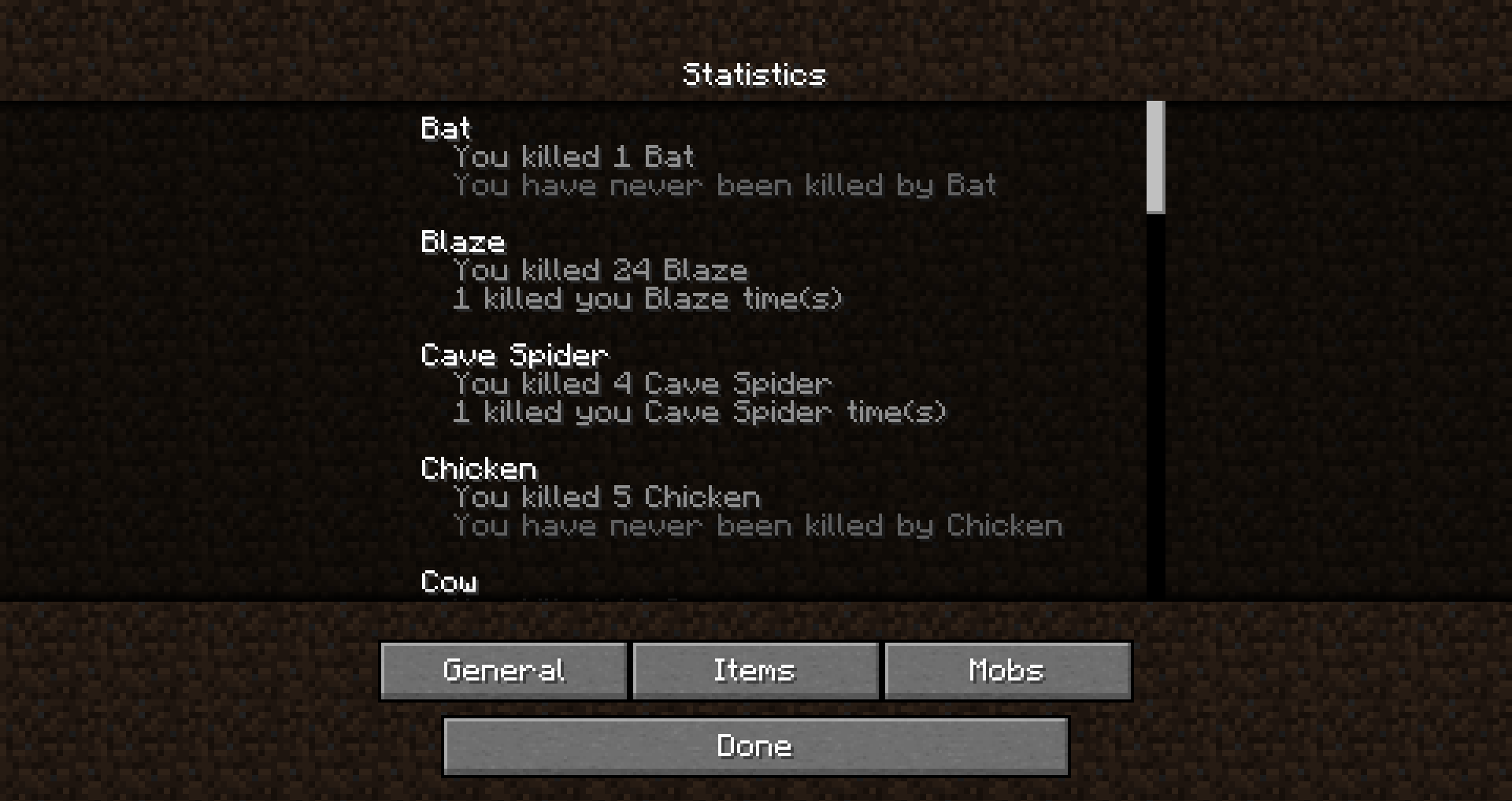 i noticed a very minor bug in the statistics menu for mobs if you look at the cave spider or any other one that you die to it says (number of times you died to it) killed you (mob name) time