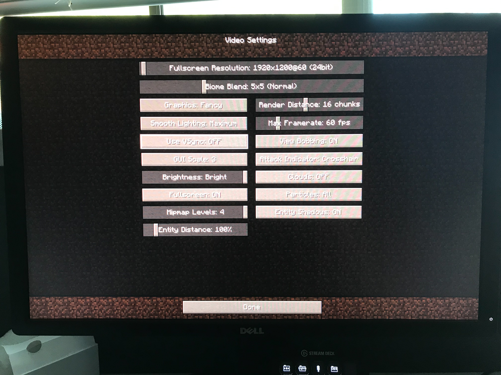 with both optifine, as well as the vanilla versions of 1.16.1 and 1.15.2, when I try to change my screen resolution to 1920 by 1080p, it just stretches the pixels out, giving the game a greyish hue. I have a 1920 by 1200 monitor, so it should give the game black bars at the top and bottom of the screen, but it doesn't. for some reason, this doesn't show up on screenshots, so I had to take pictures with my phone, however, it isn't very noticeable.