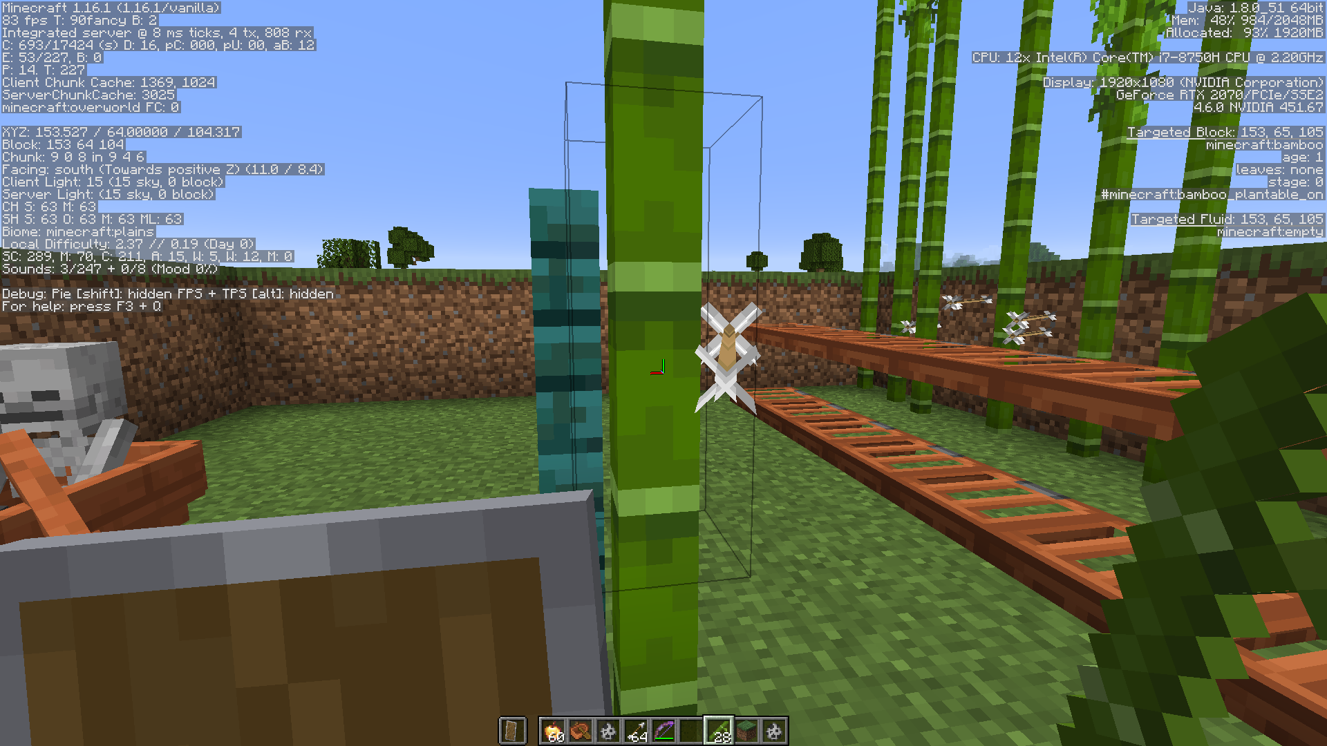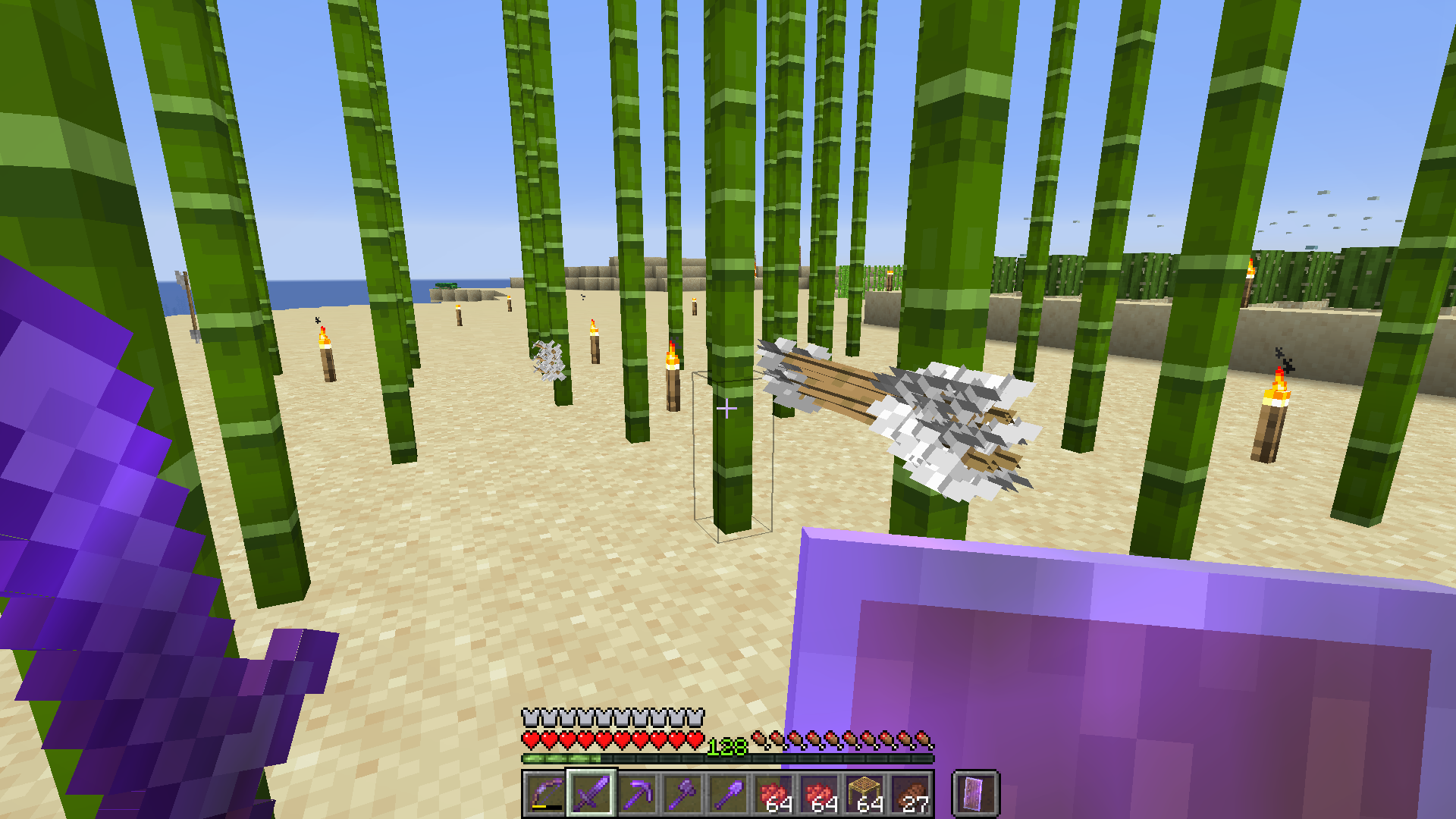 I tried: pillagers, skeletons, and myself (with Infinity), and I tried firing at bamboo, fences, iron bars, chains, and glass panes (all 1w x 2h).Β I was not able to reproduce arrow persisting in any other material than bamboo. Both skeletons and pillagers reproduce the problem.