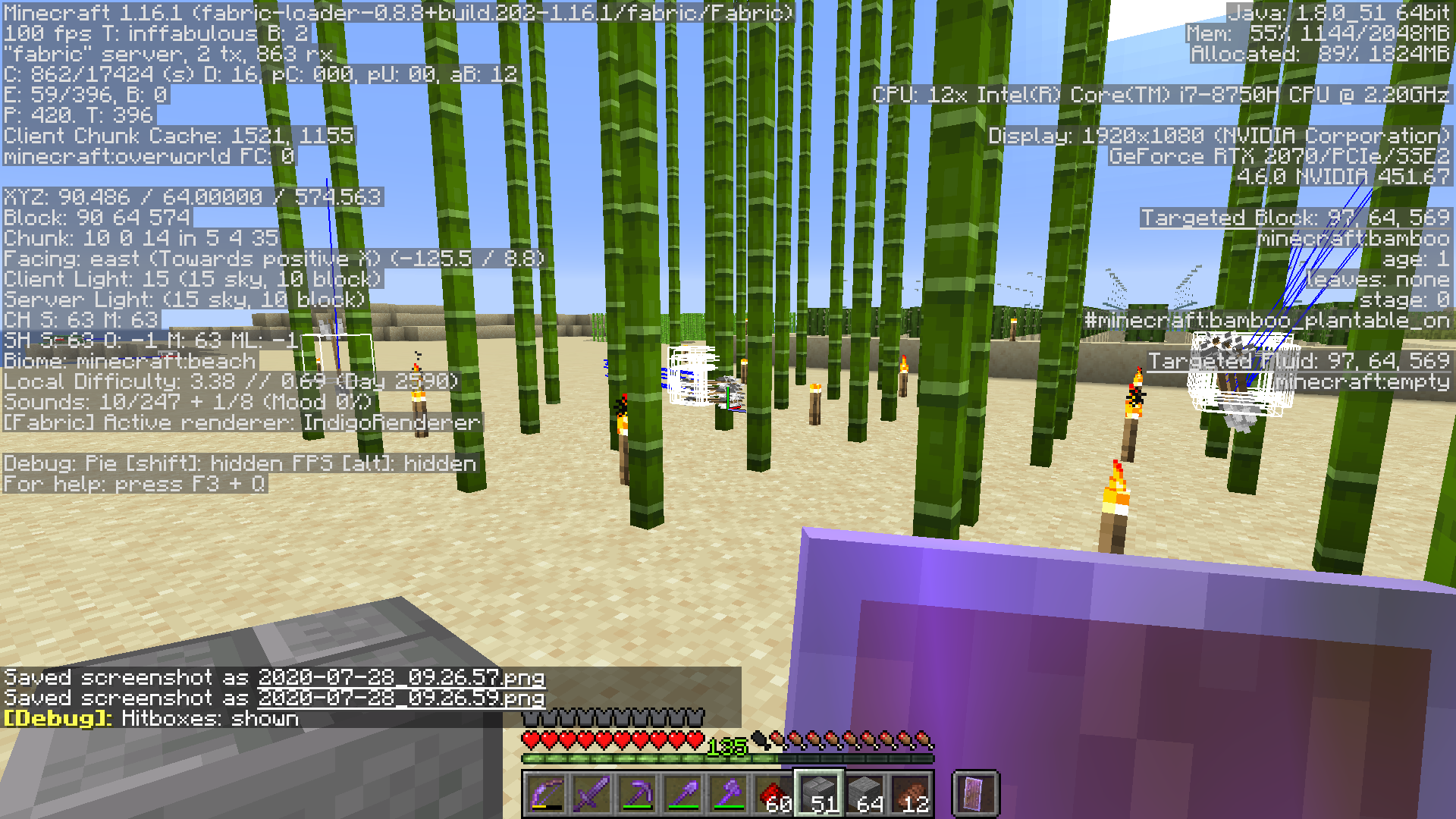 Please provide a screenshot of this occurring with the F3 debug screen enabled.