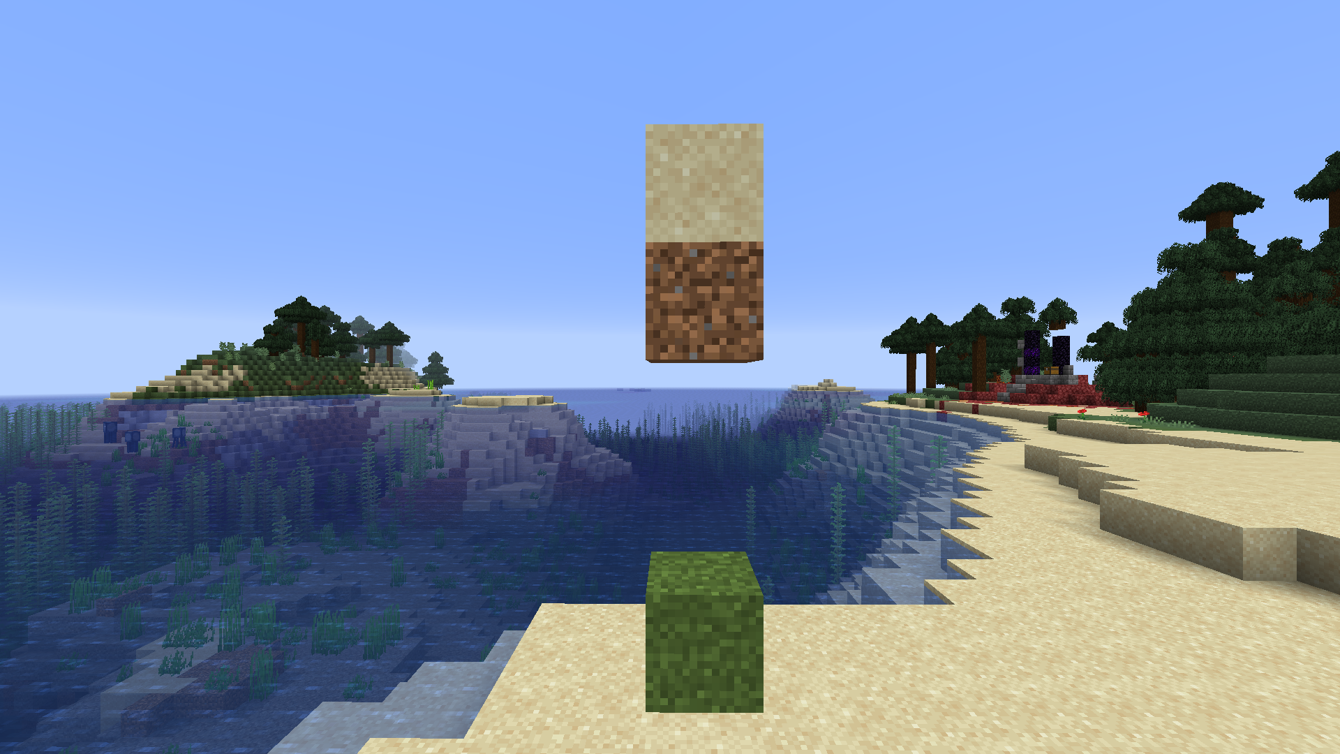 2. stand in the lowest block (grass block)