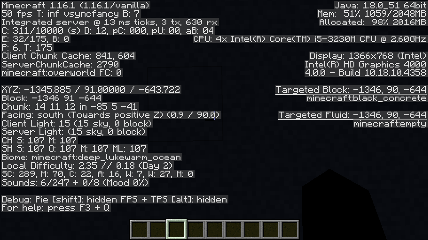 4. Make sure the player is standing on the dropped "Oak Planks" (such that, if an inventory space became available, the item would be picked-up by the player).