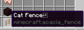 minecraft:acacia_fence (Cat Fence [LF Box Unicode]) (Image provided for clarity)