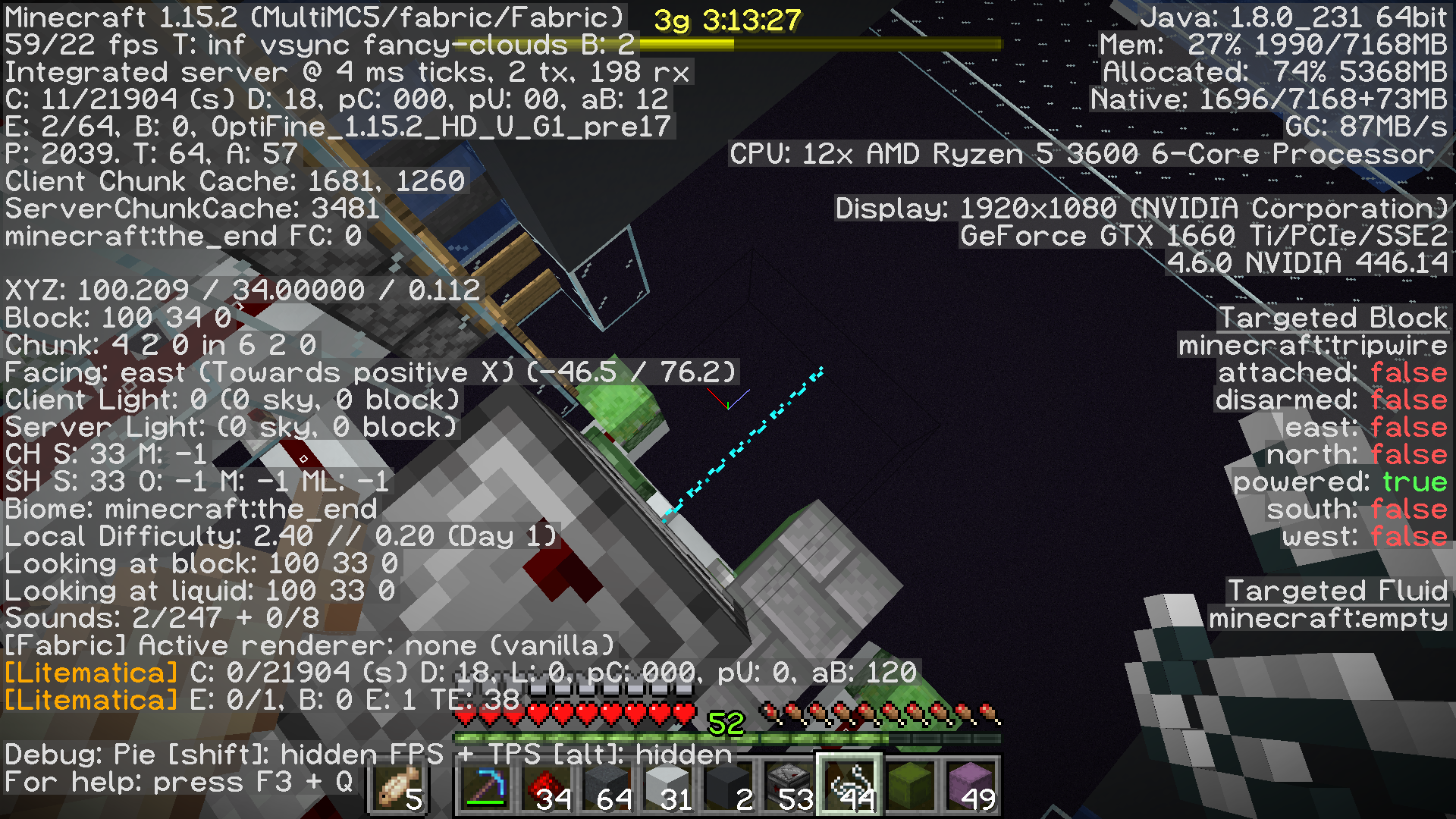 String still powered when no mobs/entities are triggering it. This bug happens both with the string alone and with the tripwire hook.