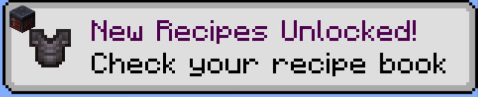 The Smithing Table currently has no recipe book despite when obtaining a netherite ingot it displays that you have unlocked a few recipes for it.
