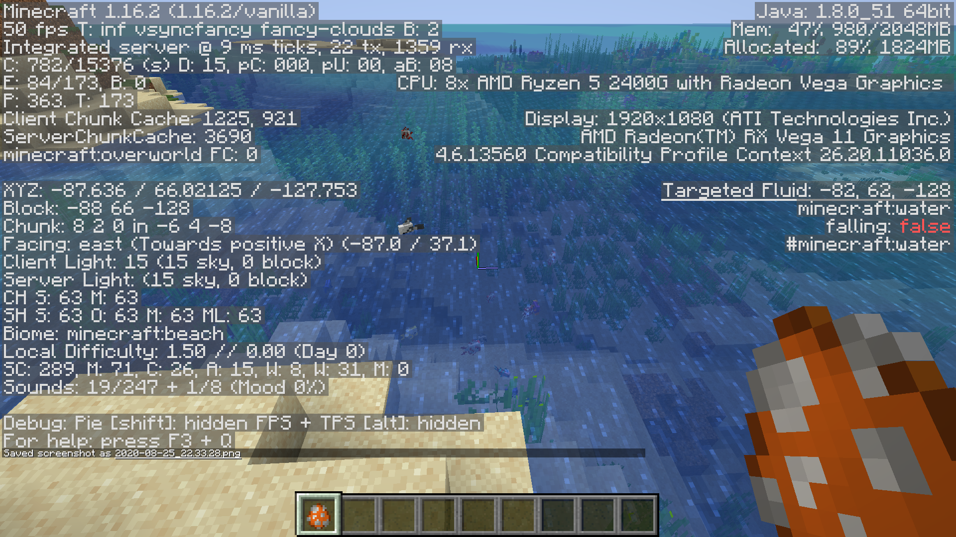 Please provide a screenshot of this occurring with the F3 debug screen enabled.