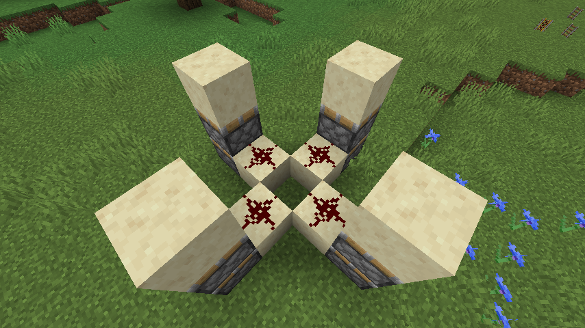 2. Place redstone torches on the sides of the blocks, such that they power the dust below.