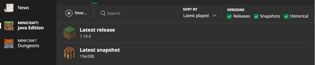 Unable to update launcher. The Latest Release does not update with the current release and there is no option for a version past 1.14.4. Uninstalling and reinstalling has no effect. Neither does uninstalling, restarting the computer, and then reinstalling from the latest Minecraft Launcher from the website.