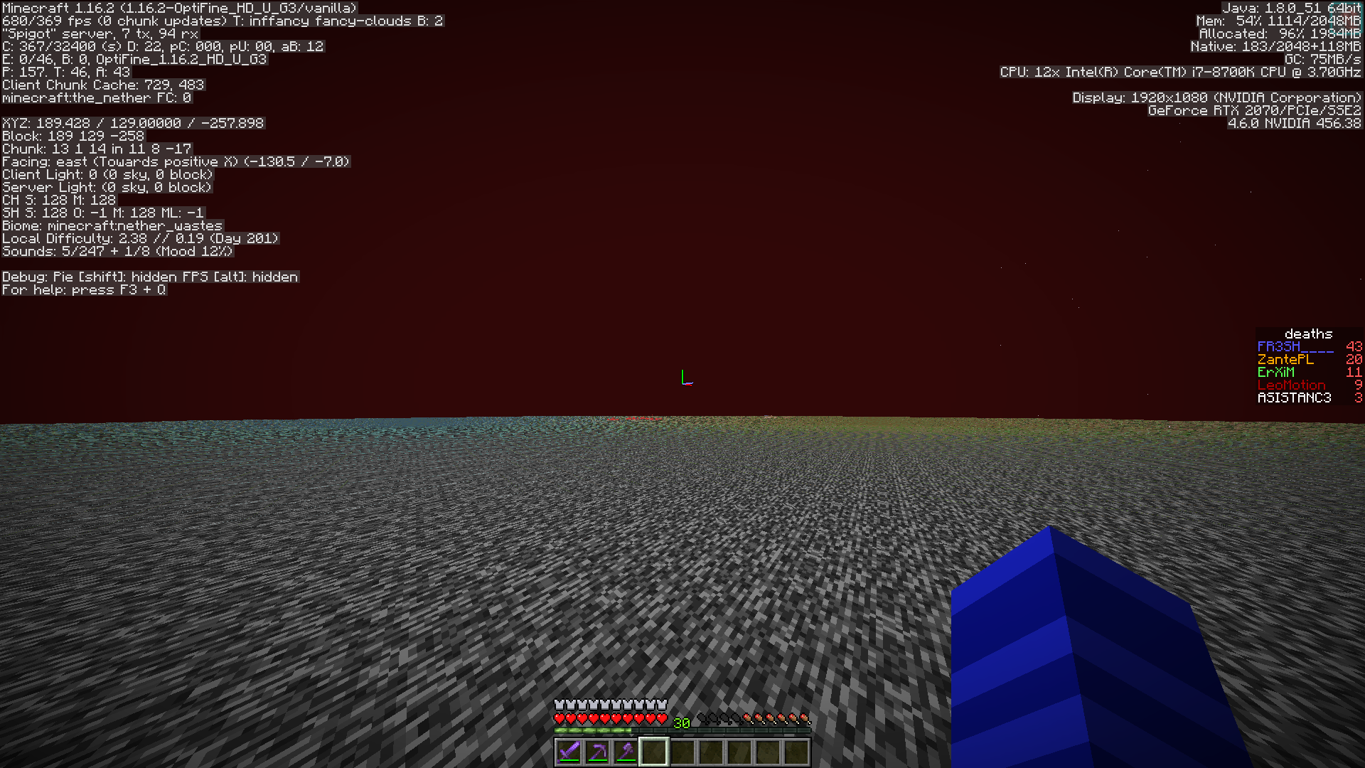 Can you please provide a screenshot with your debug screen enabled (F3)